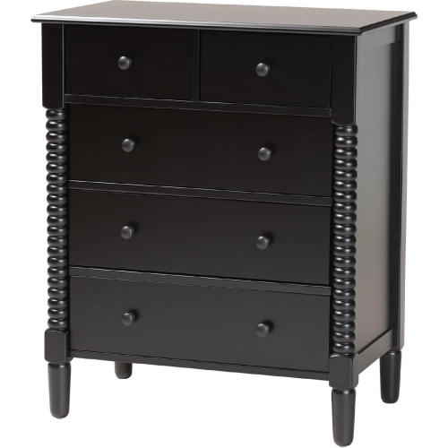 Baxton Studio SW8000-88CH5D-Black-Chest Braith 5 Drawer Chest Black Spindle Wood