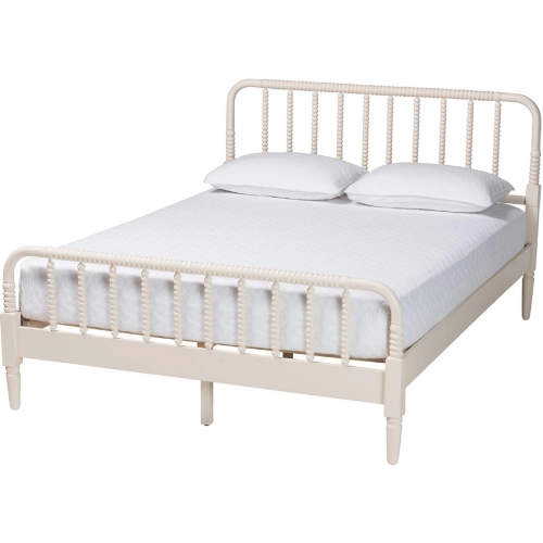 Baxton Studio SW8620-Ivory-Queen Braith Queen Platform Bed Ivory Spindle Wood