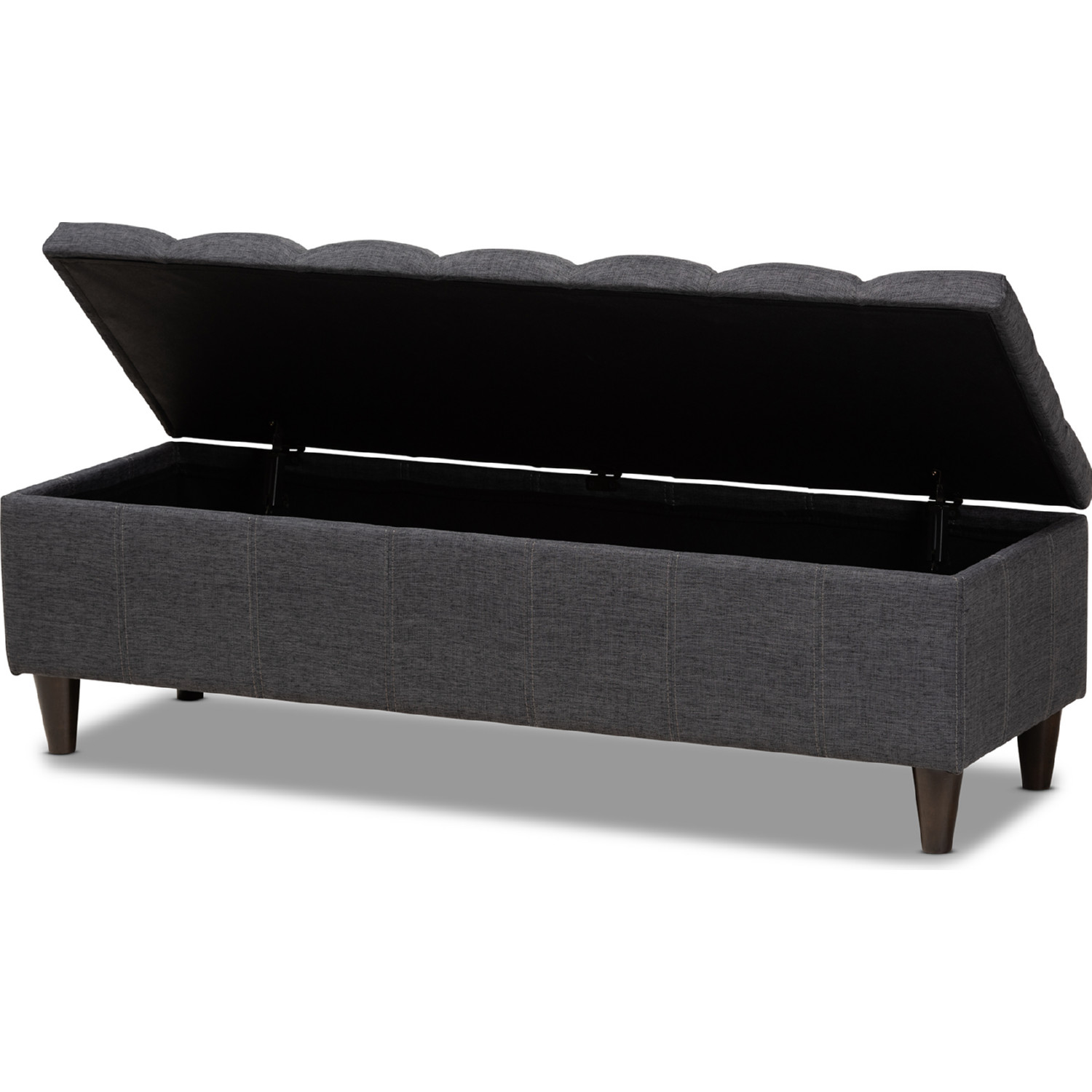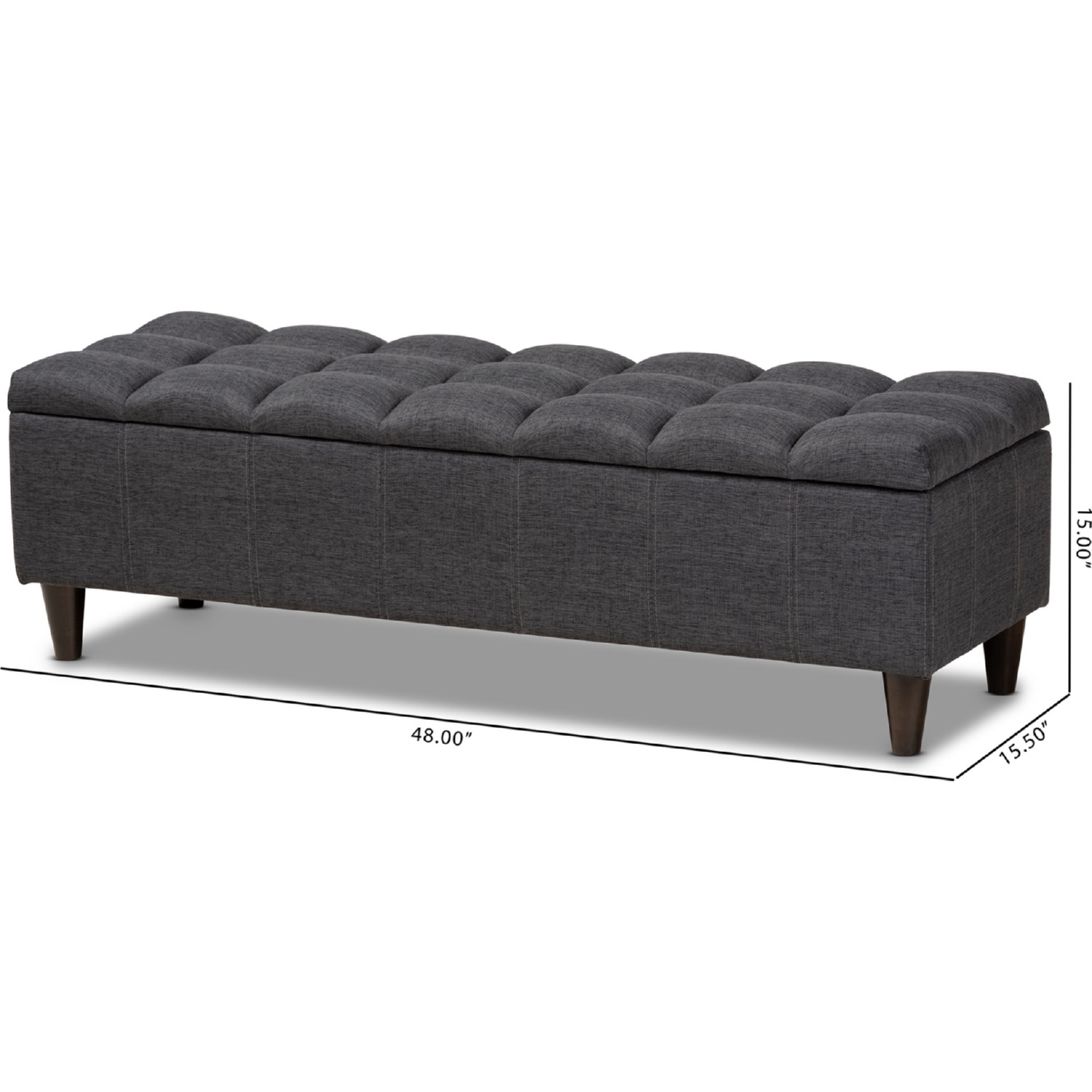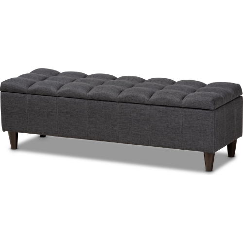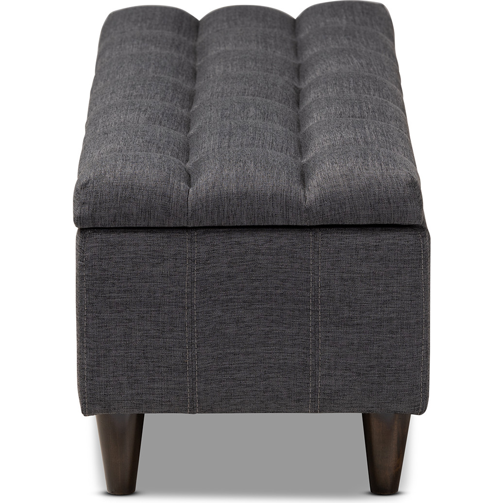 Baxton Studio Brette Storage Bench in Tufted Charcoal Gray Fabric & Dark Wood