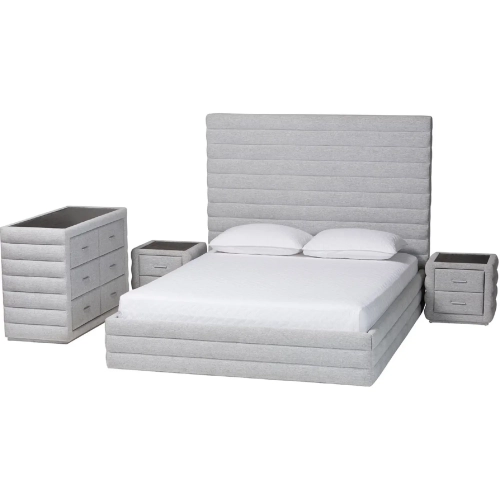 Baxton Studio Cadmus Queen 4 Piece Bedroom Set in Channel Tufted Light Grey Fabric
