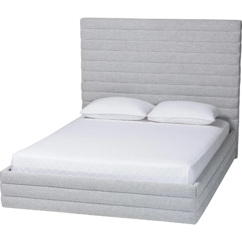 Baxton Studio Cadmus Queen Platform Bed in Channel Tufted Light Grey Fabric