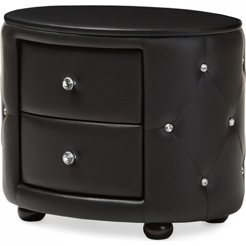 Baxton Studio Davina Oval 2 Drawer Nightstand in Black Leatherette