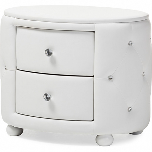 Baxton Studio BBT3119-White NS Davina Oval 2 Drawer Nightstand White Leatherette