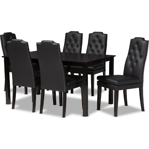 Baxton Studio Dylin 7 Piece Dining Set in Black Leatherette & Dark Wood