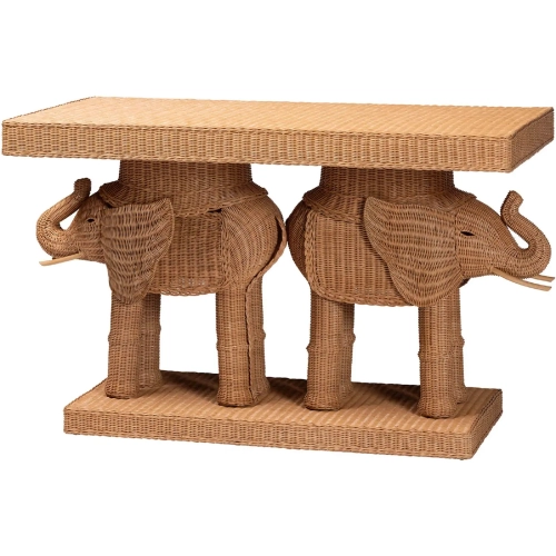 bali & pari Elissa Elephant Console Table in Light Honey Finish Rattan