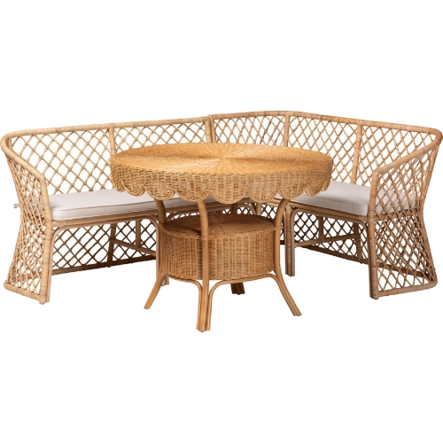 bali & pari Frayne3 Piece Dining Nook Set in Light Honey Rattan & Fabric