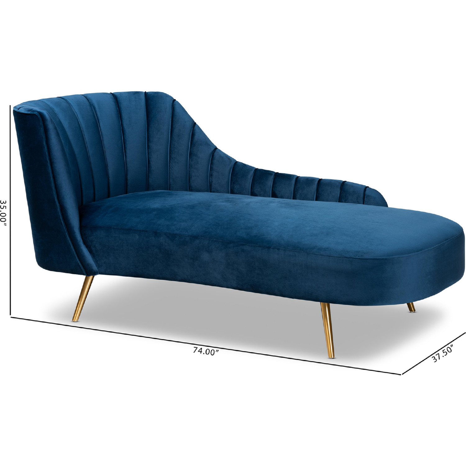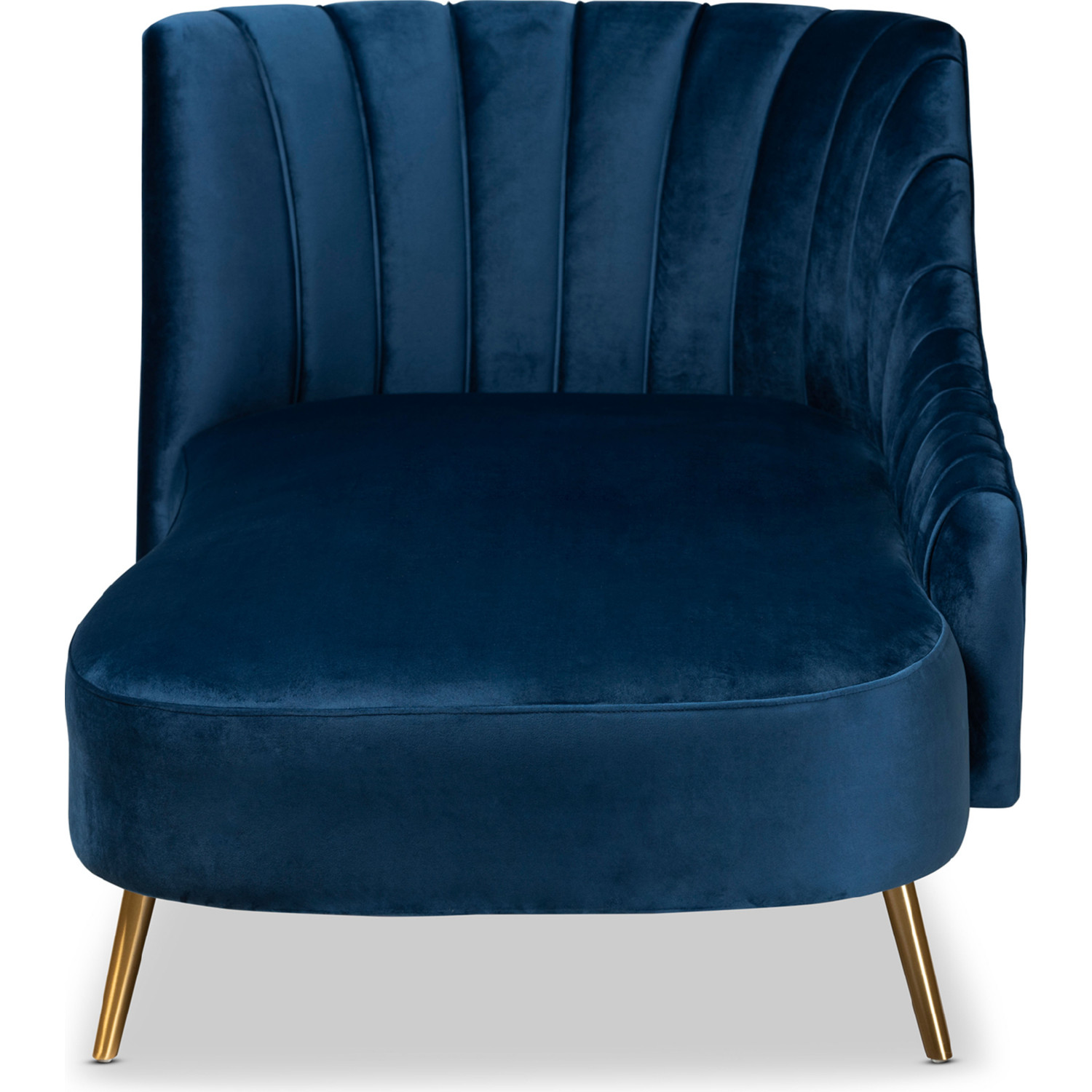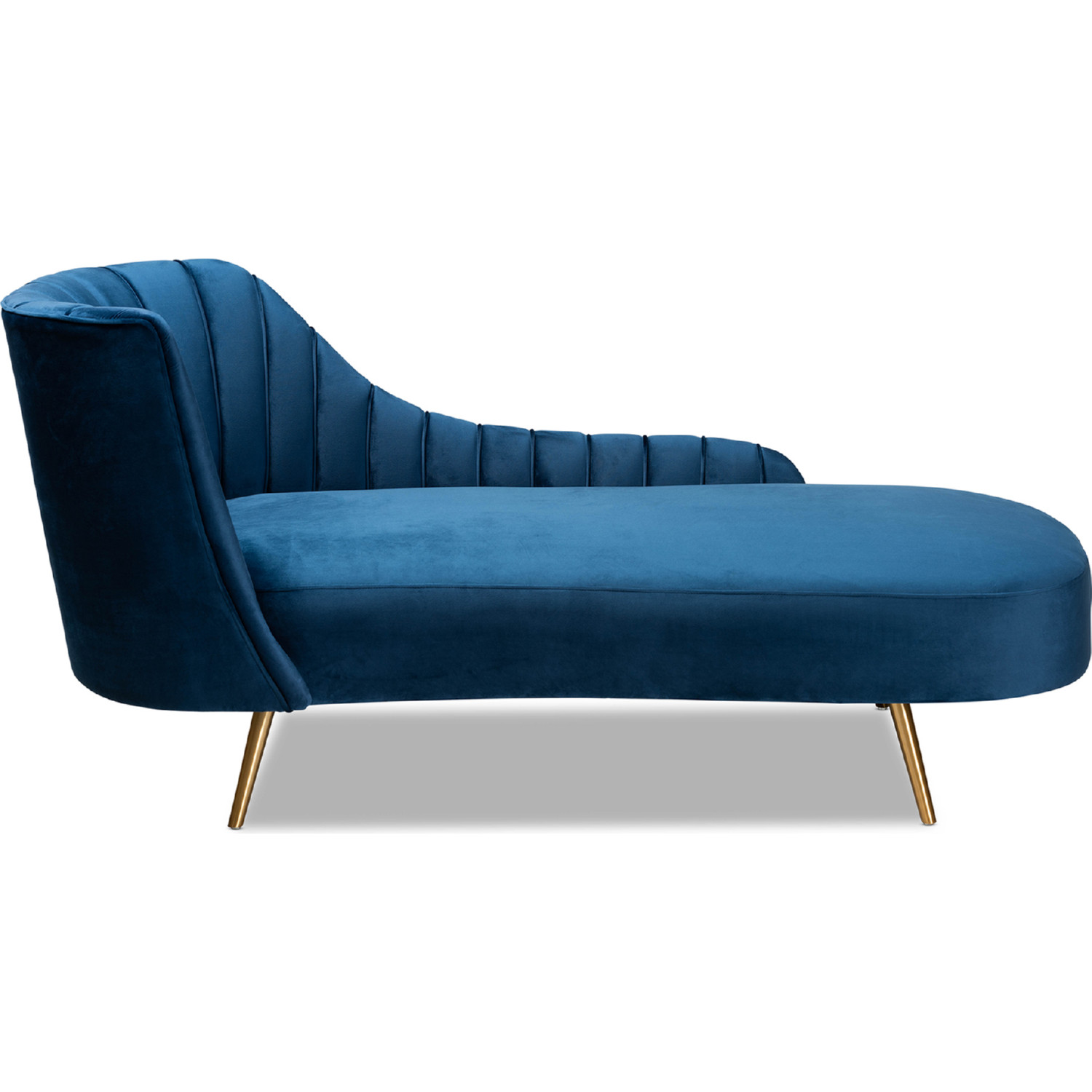 Baxton Studio Kailyn Chaise in Channel Tufted Navy Blue Velvet & Gold