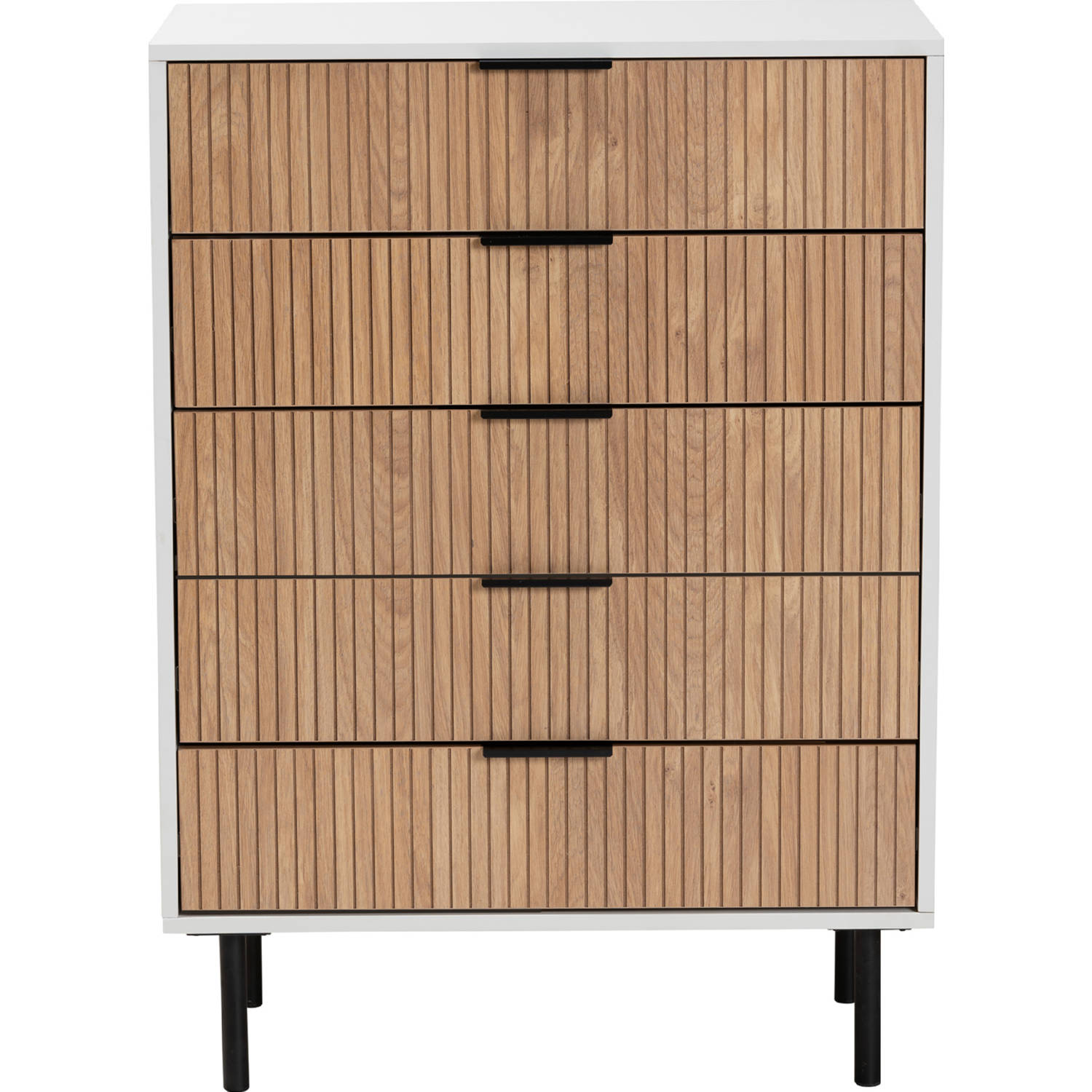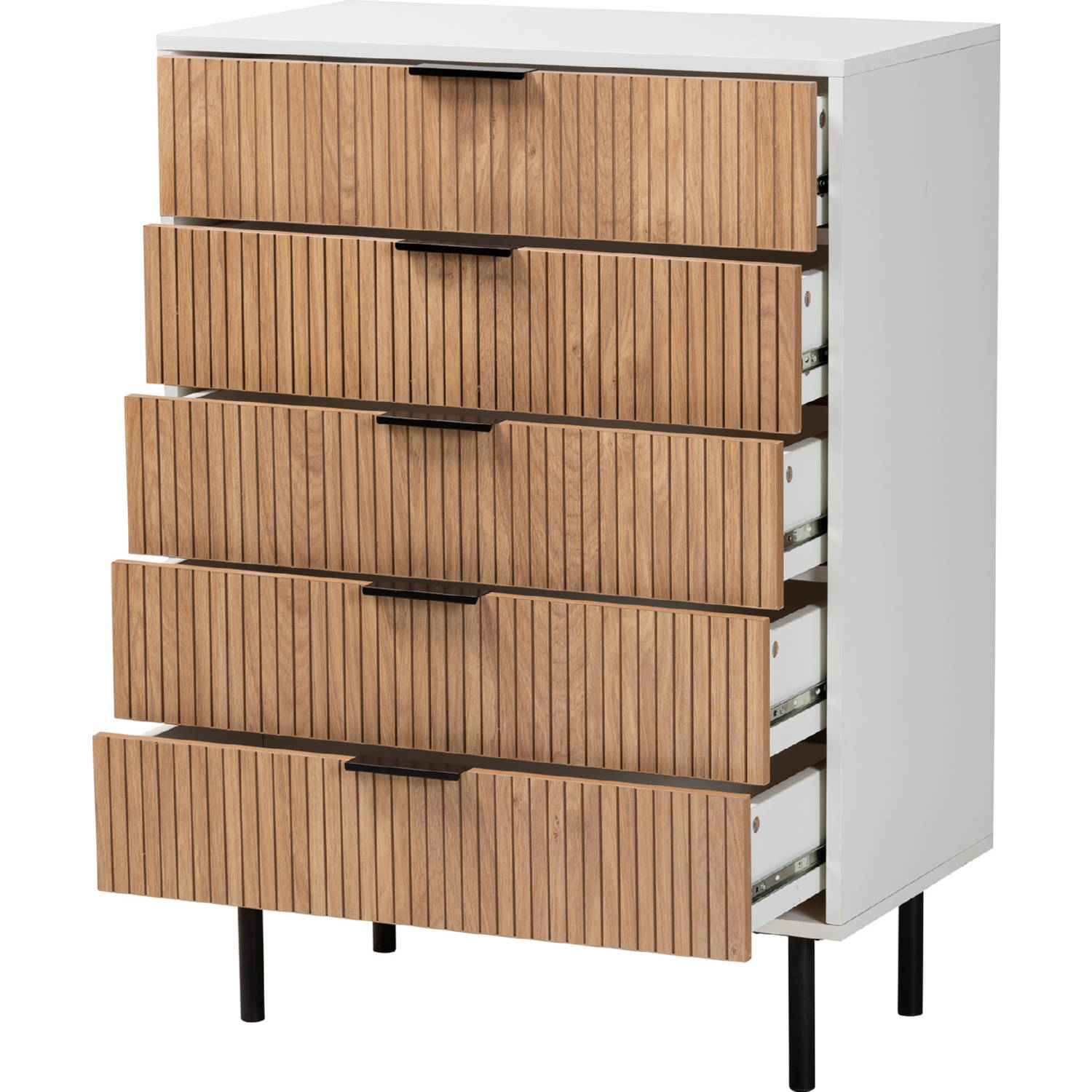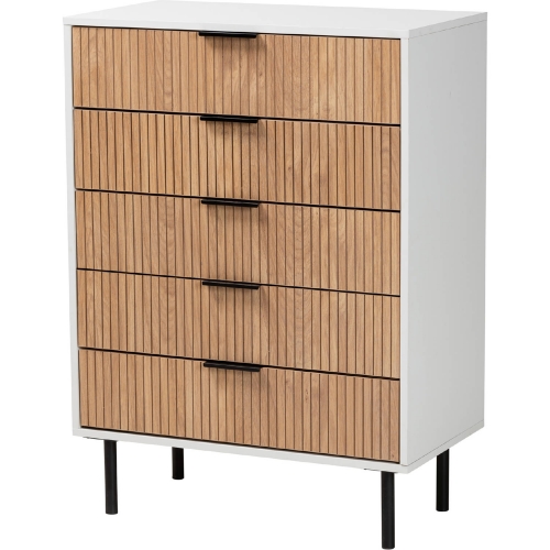 Baxton Studio Karima 5 Drawer Cabinet in White & Natural Wood & Black Metal