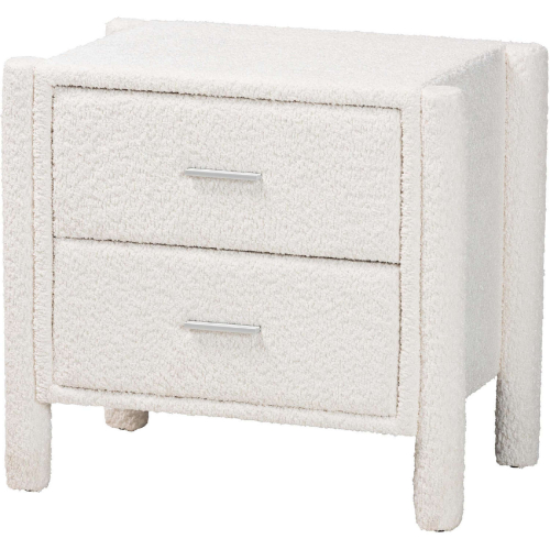 Baxton Studio Laria 2 Drawer Nightstand in White Teddy Bear Plush Fabric