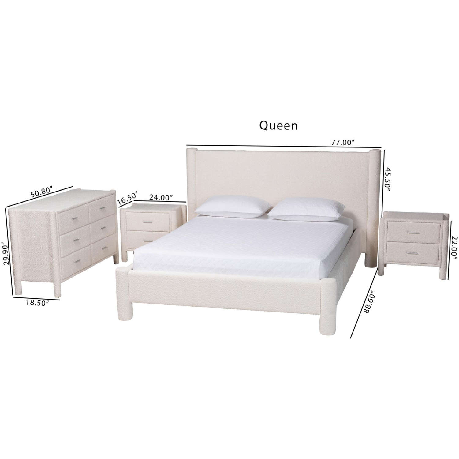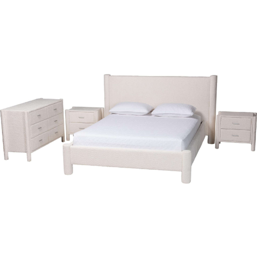 Baxton Studio BBT61176 A1-White-King 4PC Bedroom Set Laria 4 Piece King Bedroom Set White Teddy Bear Plush Fabric