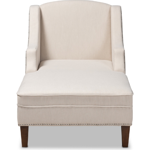 Baxton Studio Leonie Chaise Lounge in Beige Fabric & Wenge Brown Finish