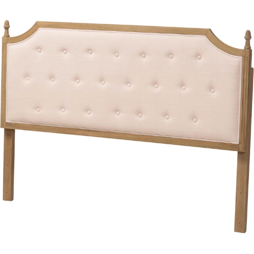 Lourdes Queen Headboard in Tufted Beige Fabric & Weathered Oak Brown Wood