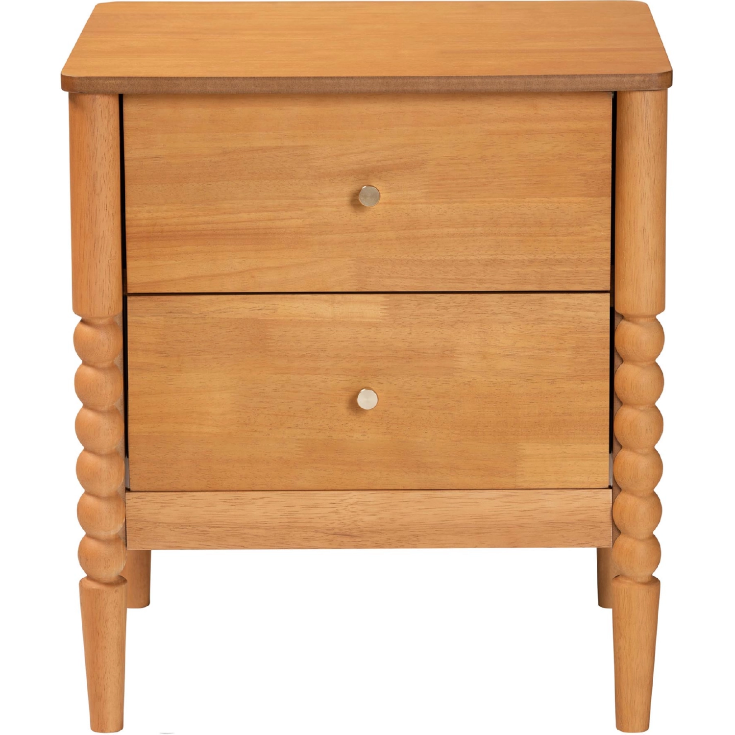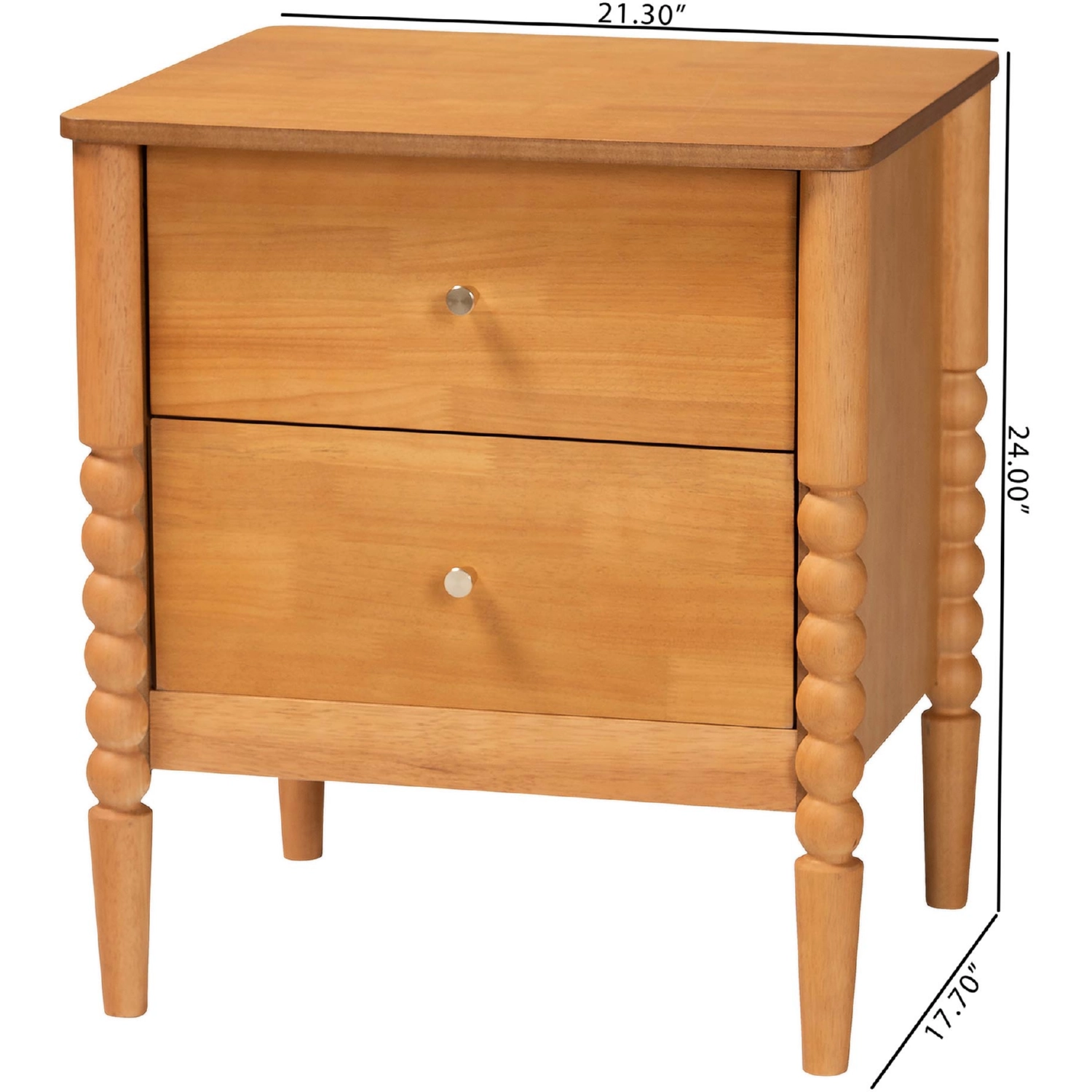 Baxton Studio MG9011-NT Oak-2DW-NS Lucera 2 Drawer Bobbin Nightstand Oak Brown Finish Wood