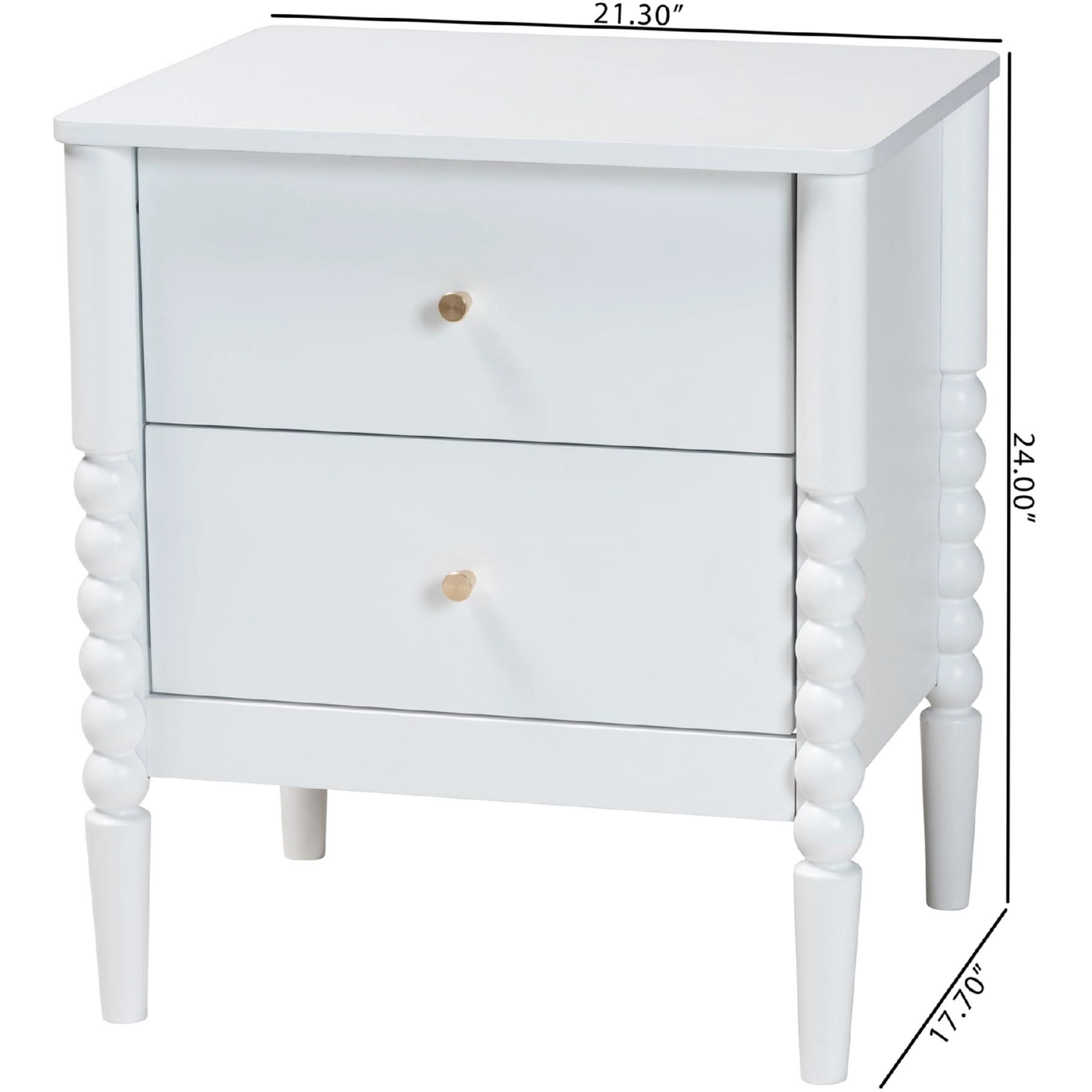 Baxton Studio Lucera 2 Drawer Bobbin Nightstand in White Finish Wood