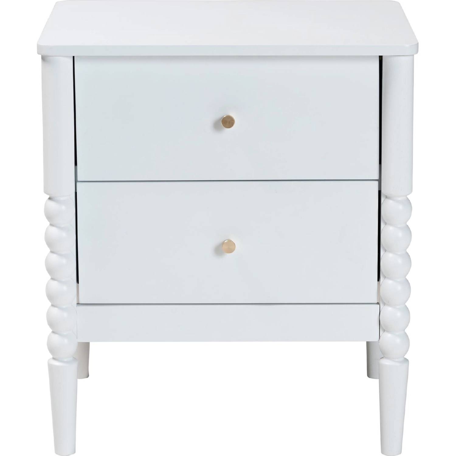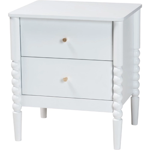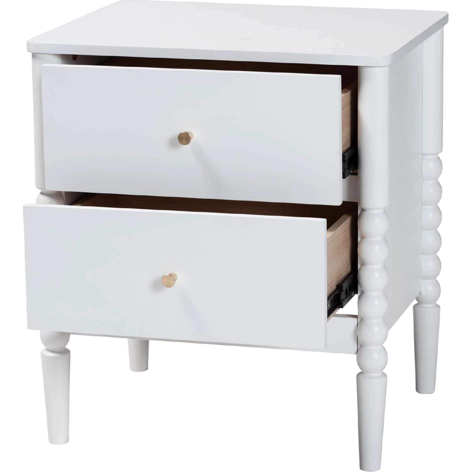 Baxton Studio MG9011-White-2DW-NS Lucera 2 Drawer Bobbin Nightstand White Finish Wood
