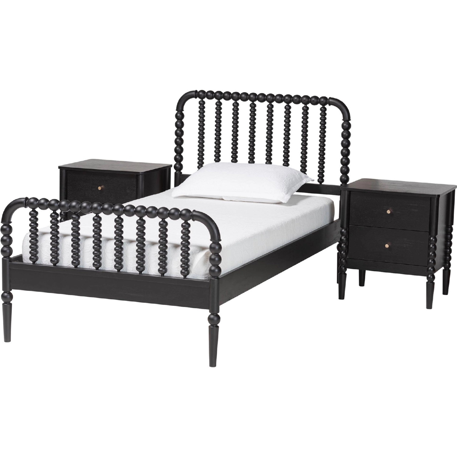 Baxton Studio Lucera 3 Piece Full Bobbin Bedroom Set in Black Finish Wood