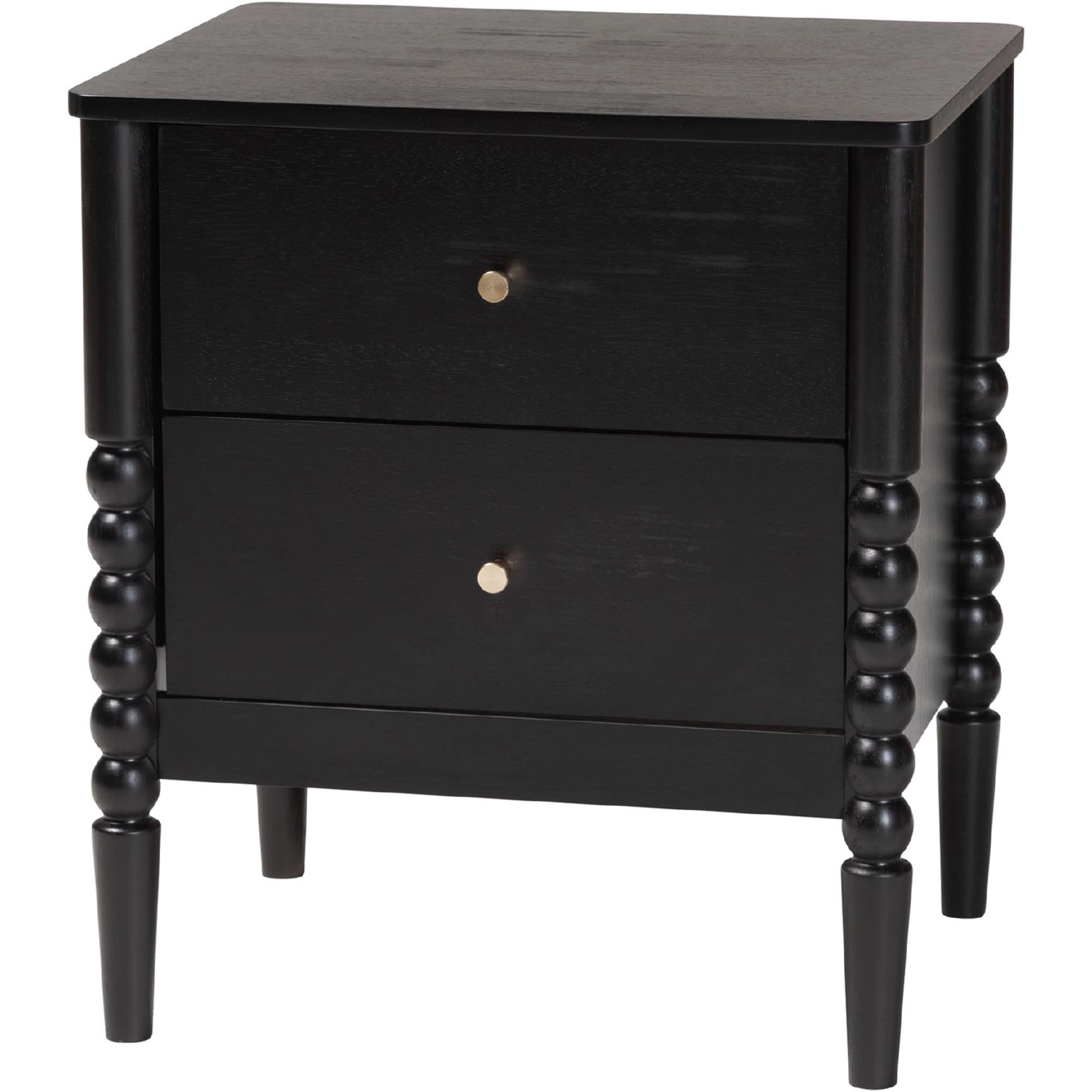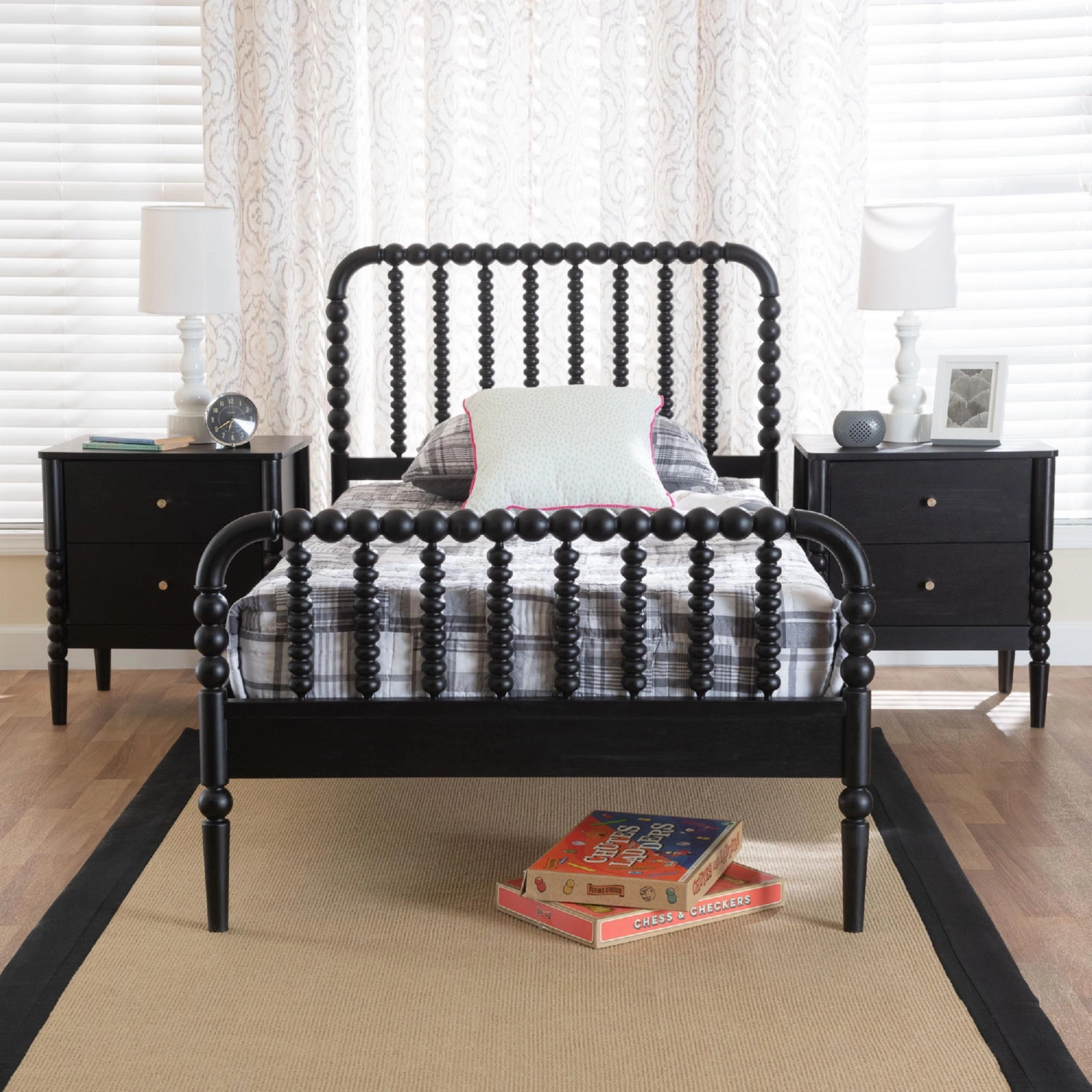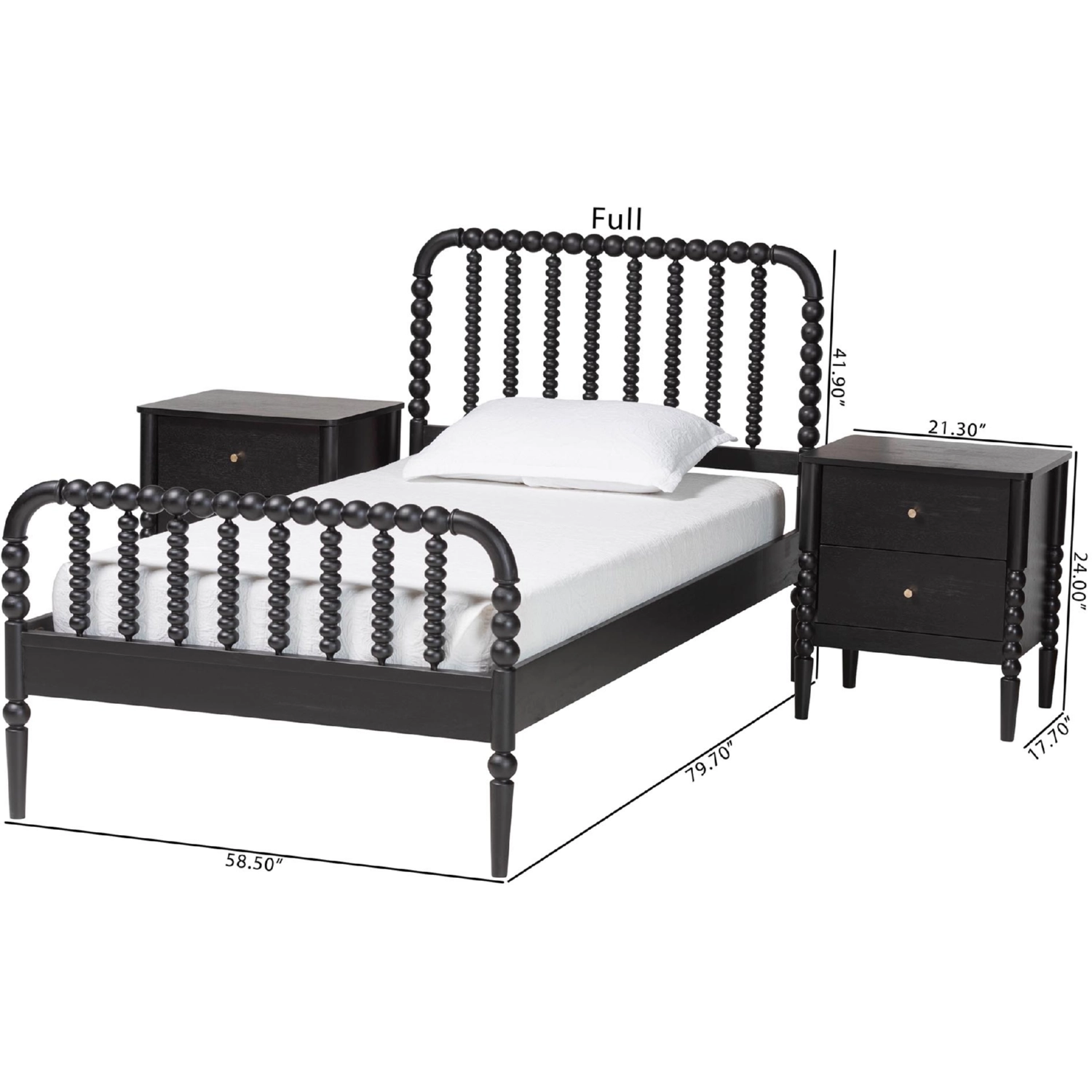 Baxton Studio MG0110-4-Black-Full 3PC Bedroom Set Lucera 3 Piece Full Bobbin Bedroom Set Black Finish Wood
