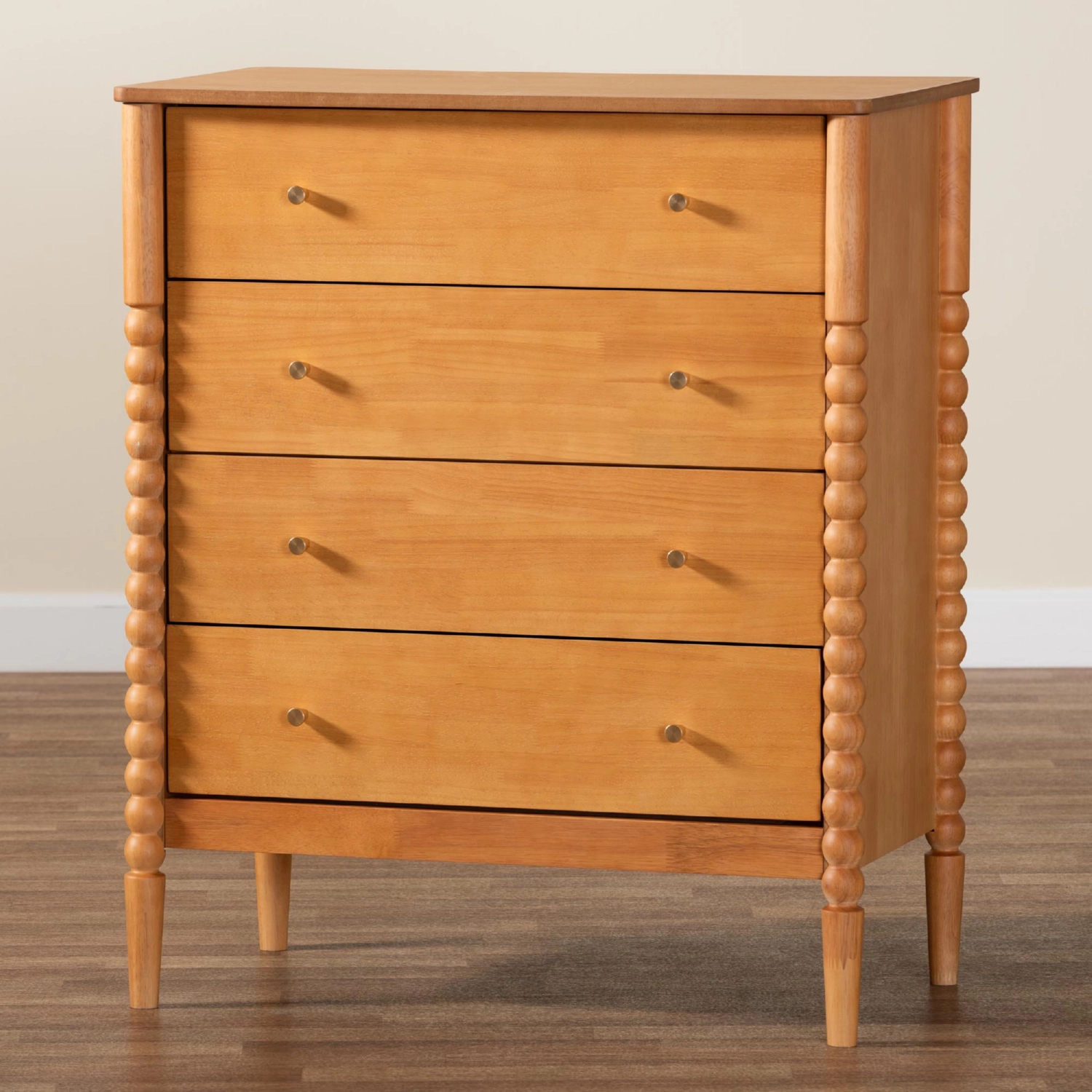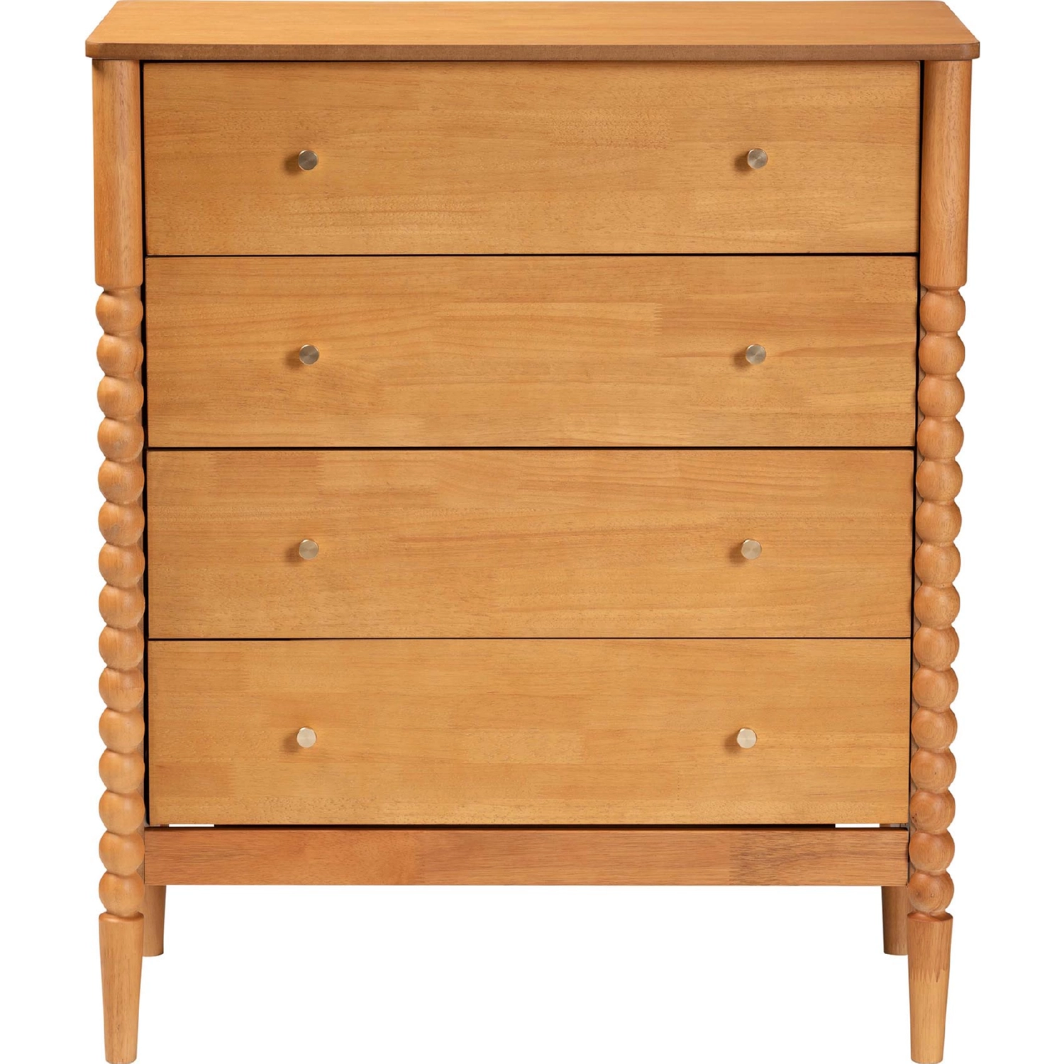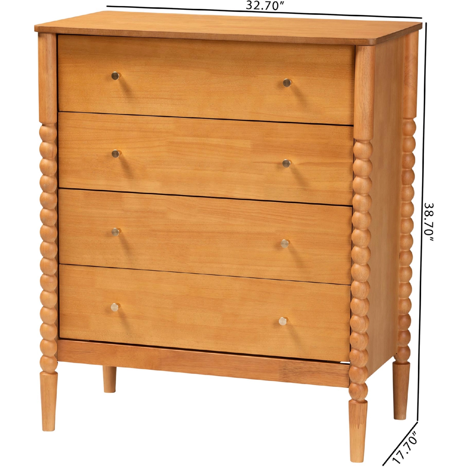 Baxton Studio MG9011-NT Oak-4DW-Chest Lucera 4 Drawer Bobbin Chest Oak Brown Finish Wood