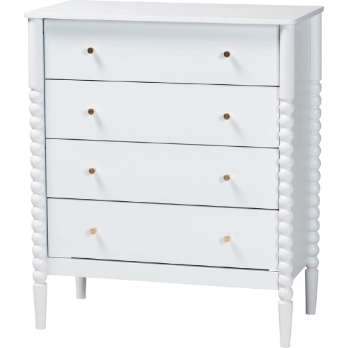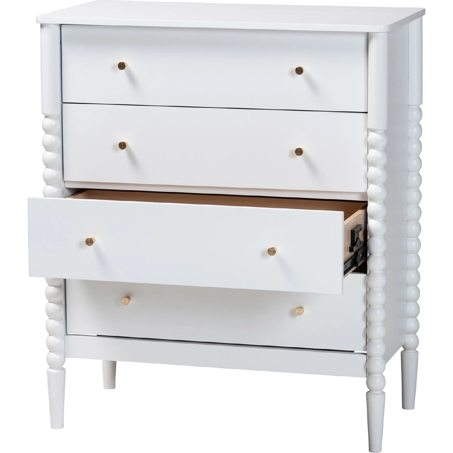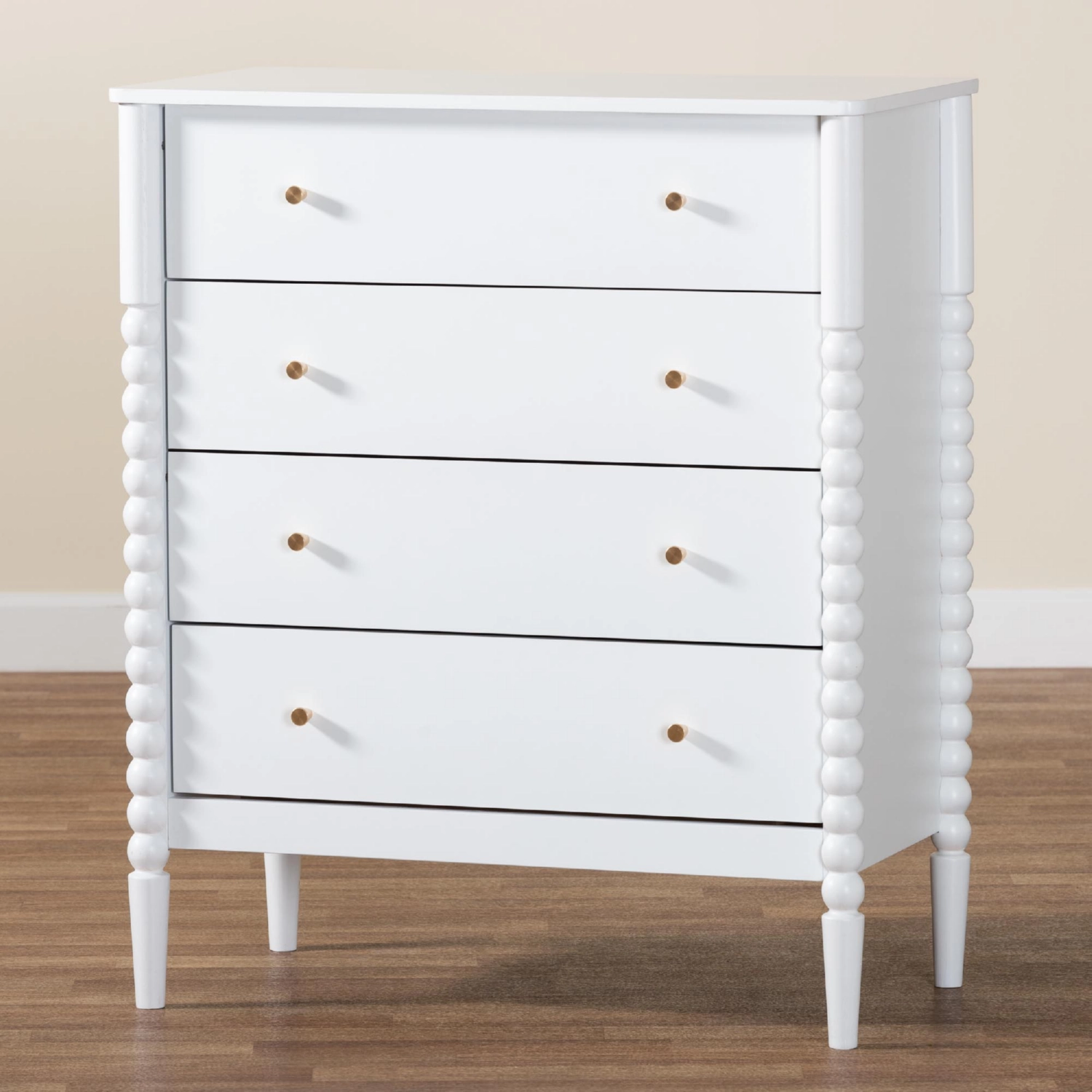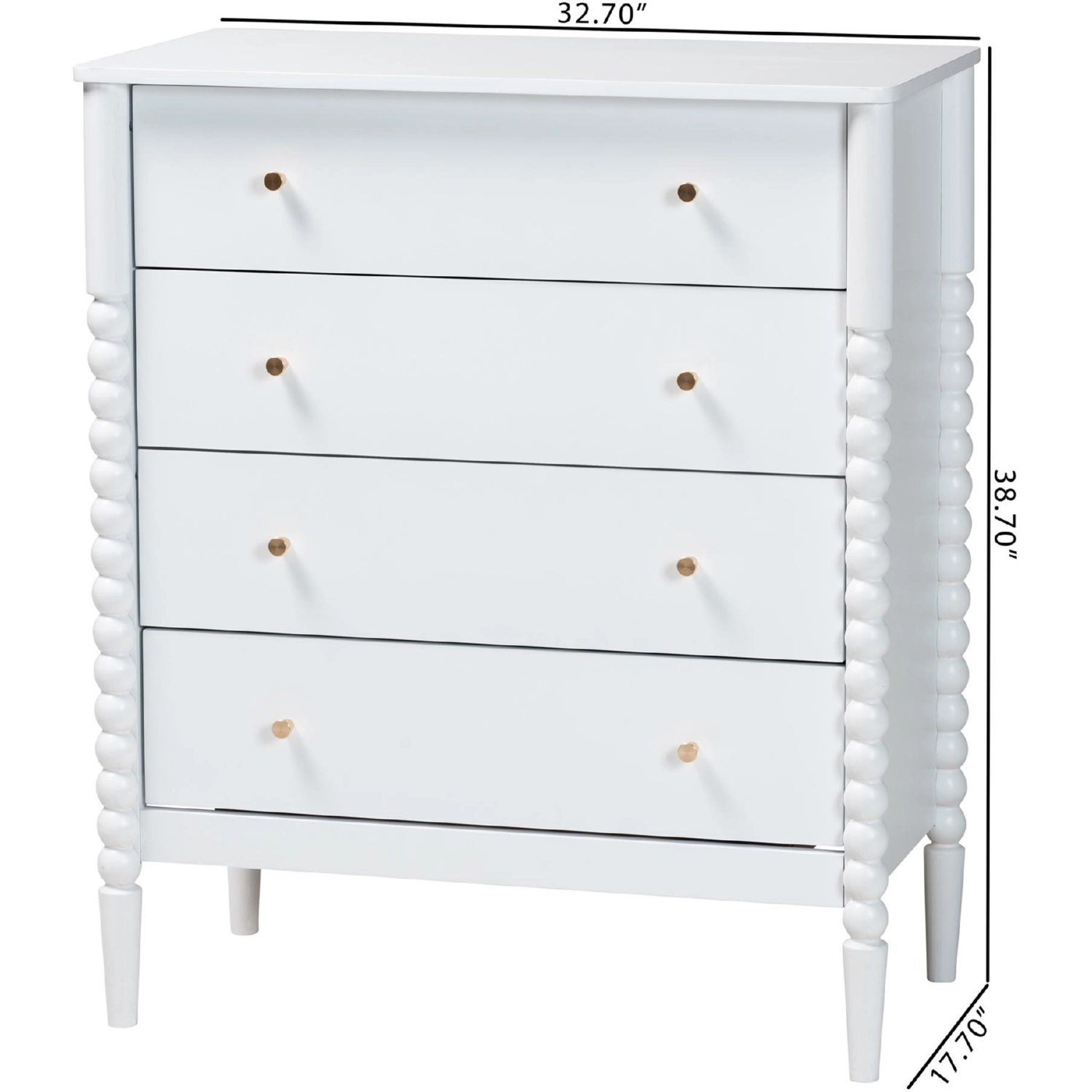 Baxton Studio Lucera 4 Drawer Bobbin Chest in White Finish Wood