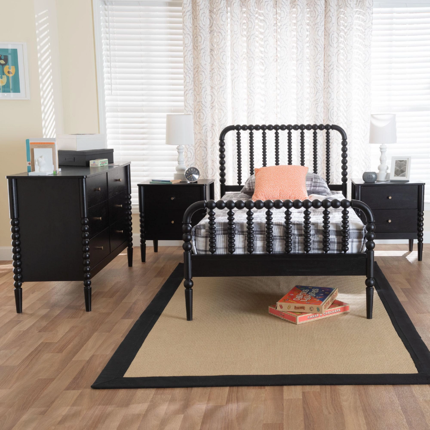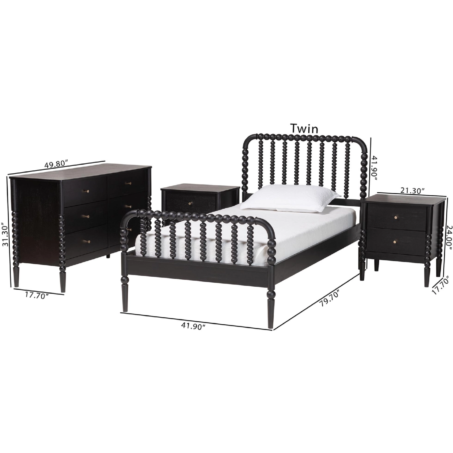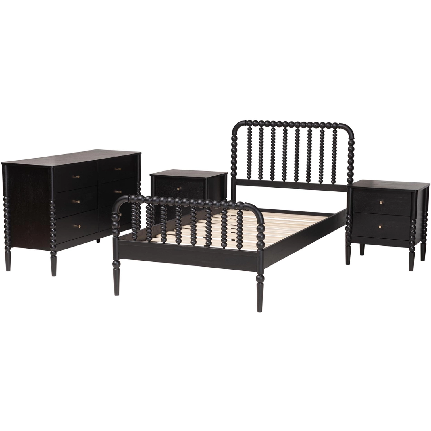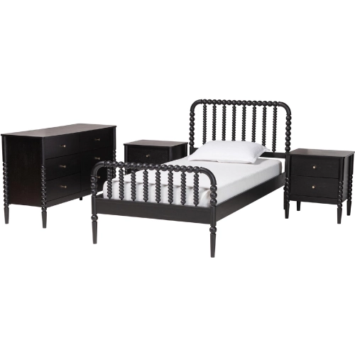 Baxton Studio Lucera 4 Piece Full Bobbin Bedroom Set in Black Finish Wood