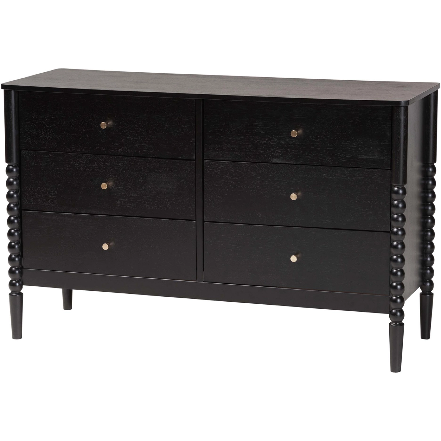 Baxton Studio MG0110-4-Black-Full 4PC Bedroom Set Lucera 4 Piece Full Bobbin Bedroom Set Black Finish Wood
