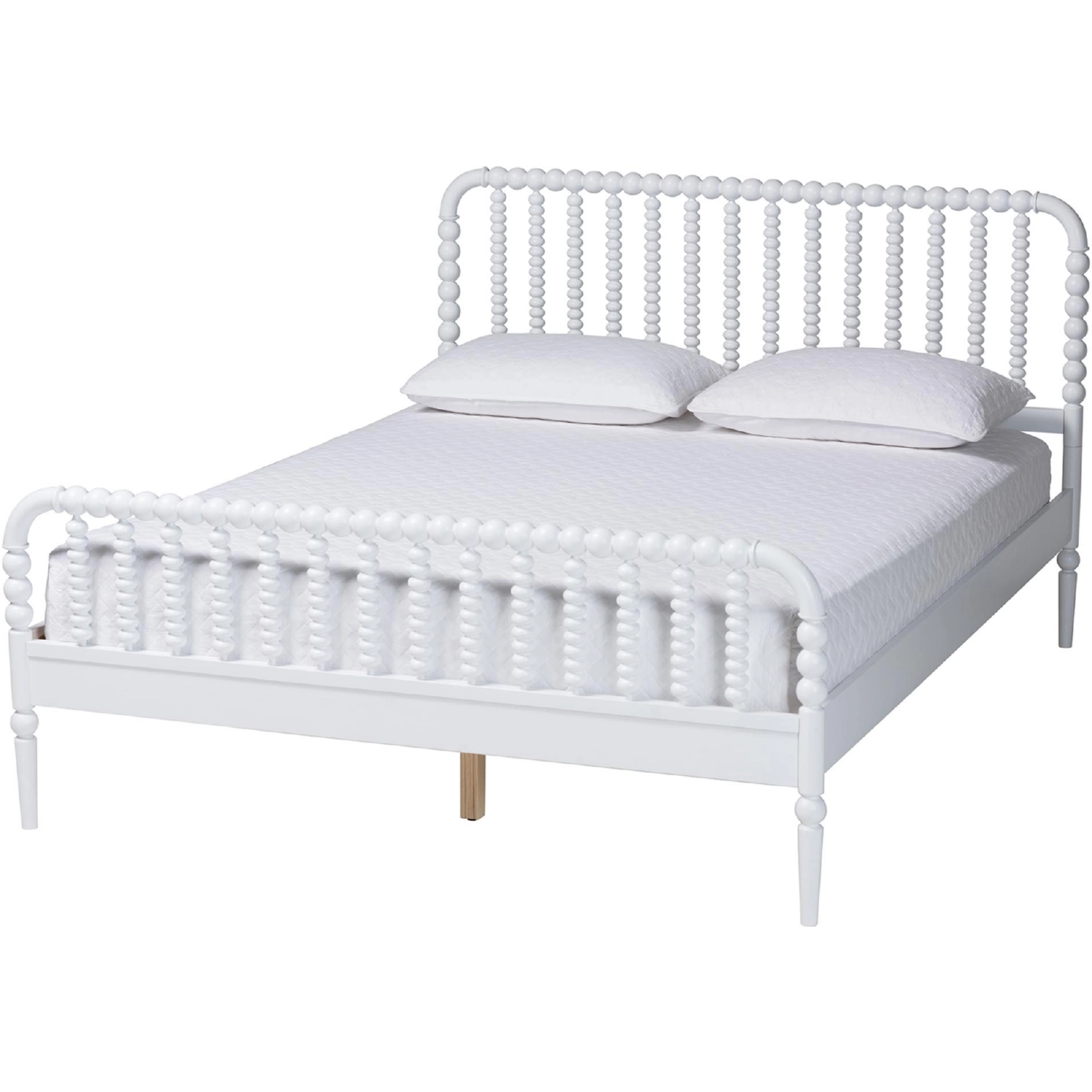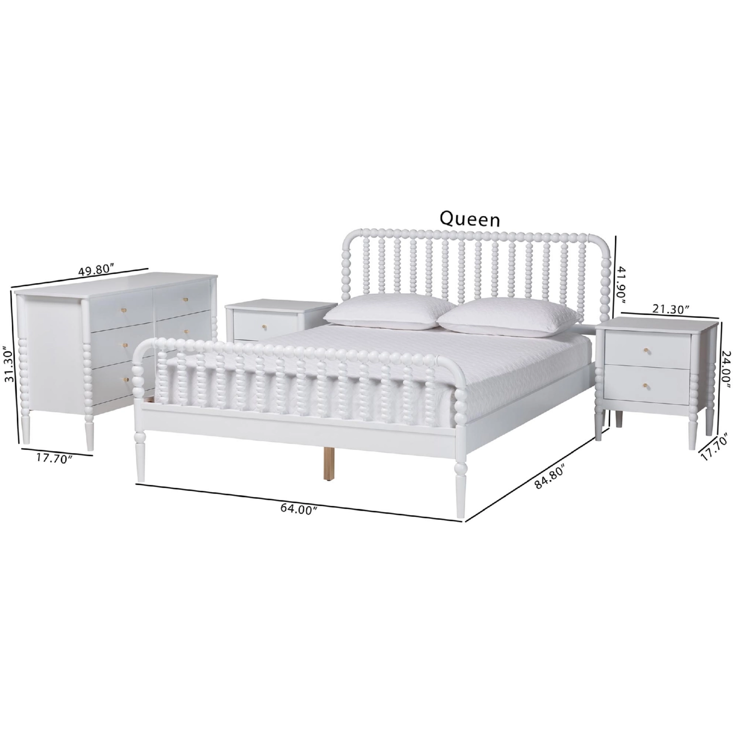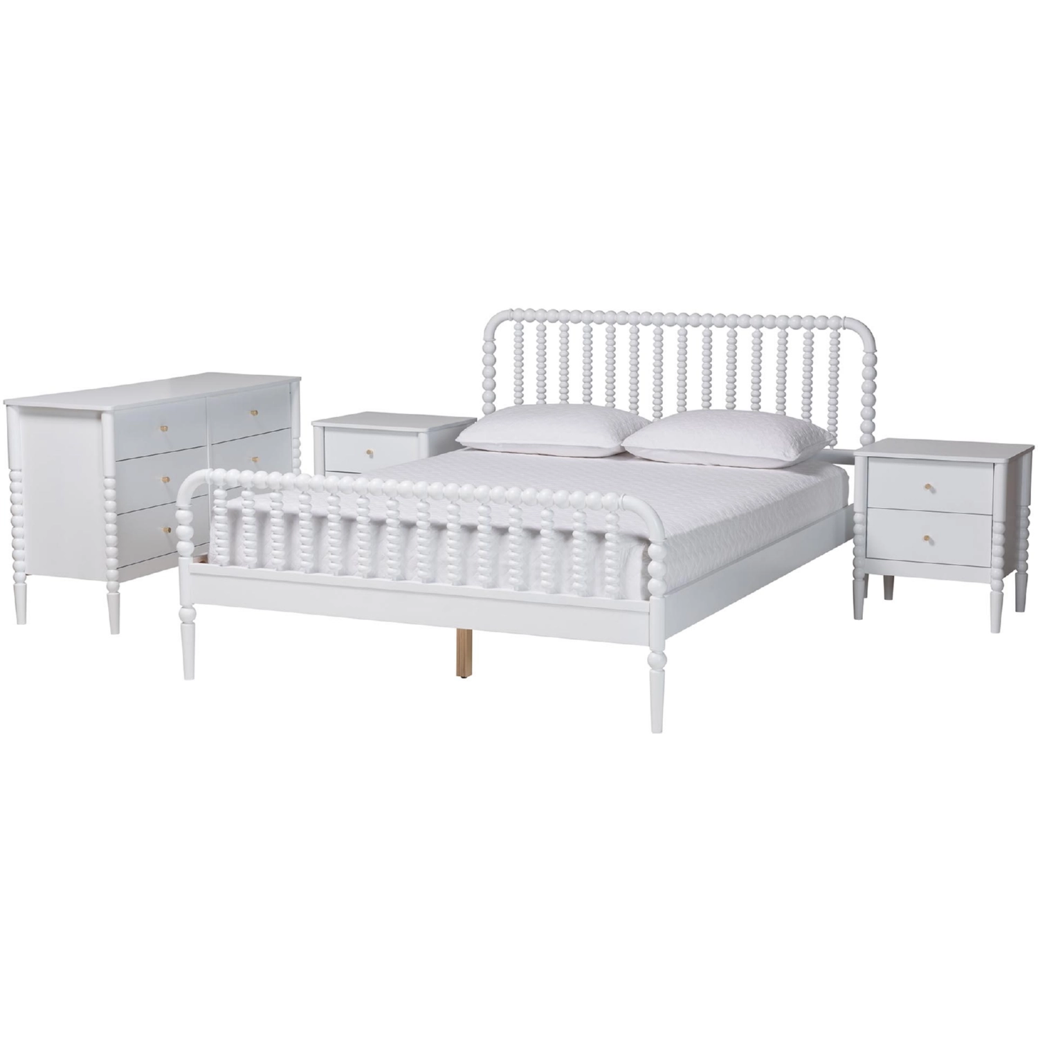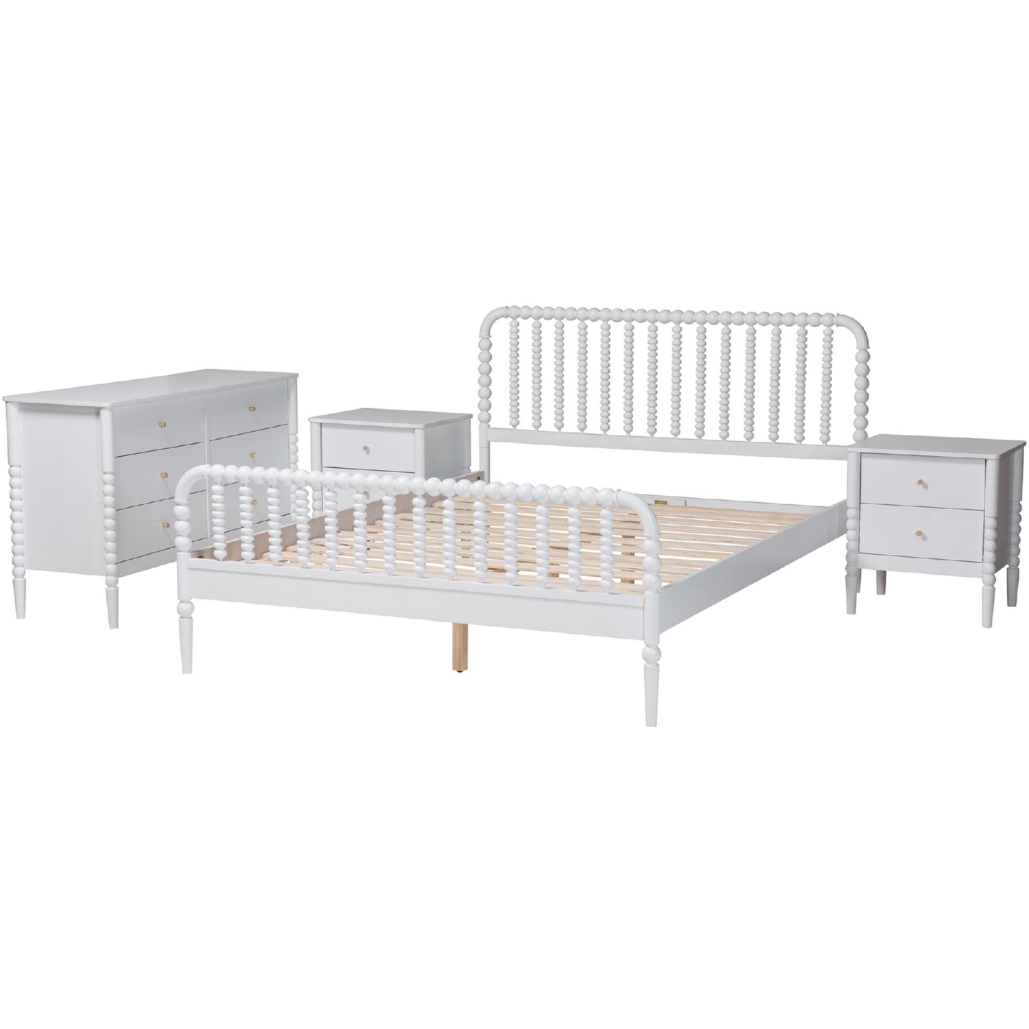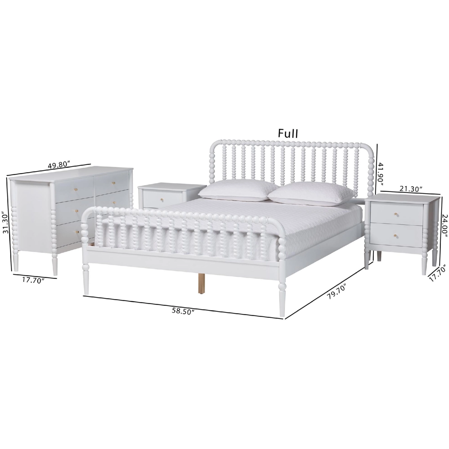 Baxton Studio Lucera 4 Piece Full Bobbin Bedroom Set in White Finish Wood