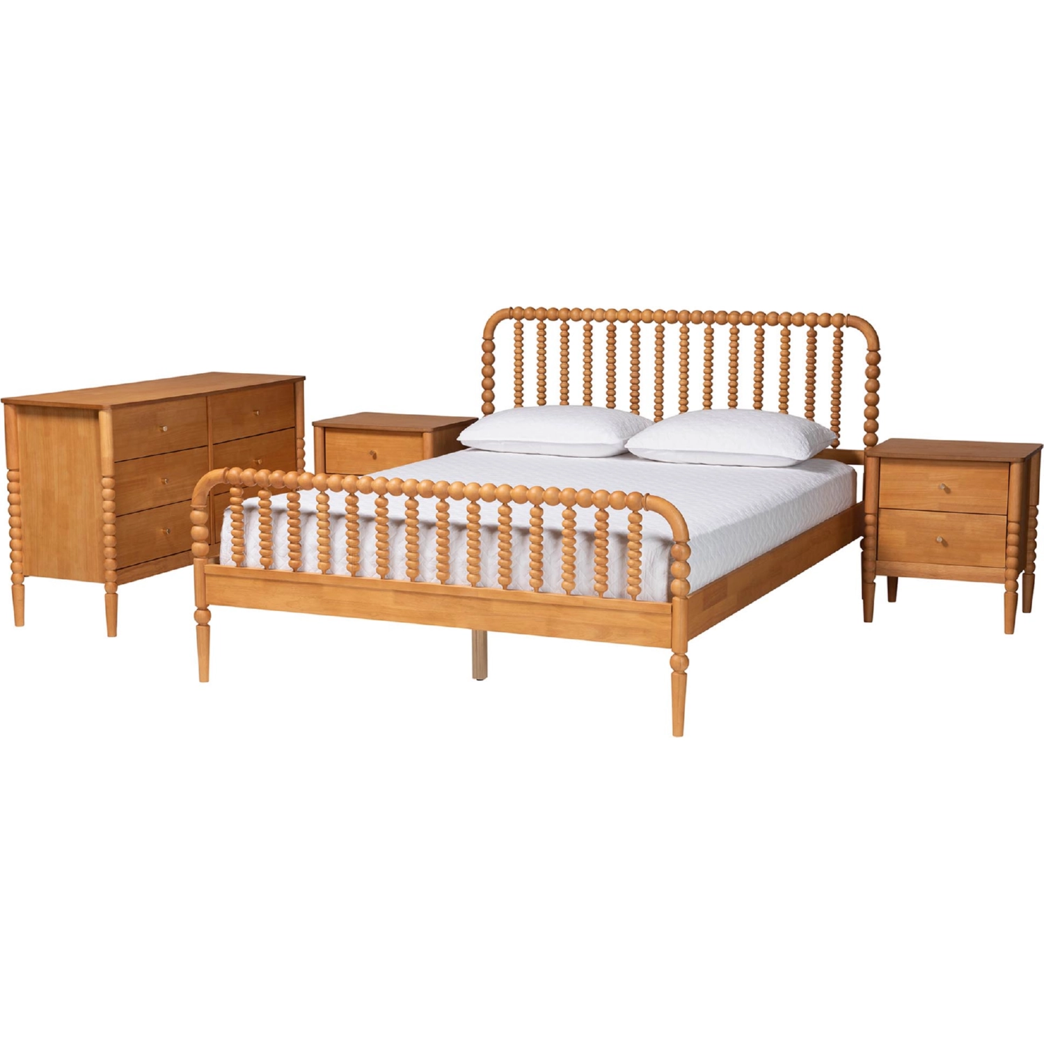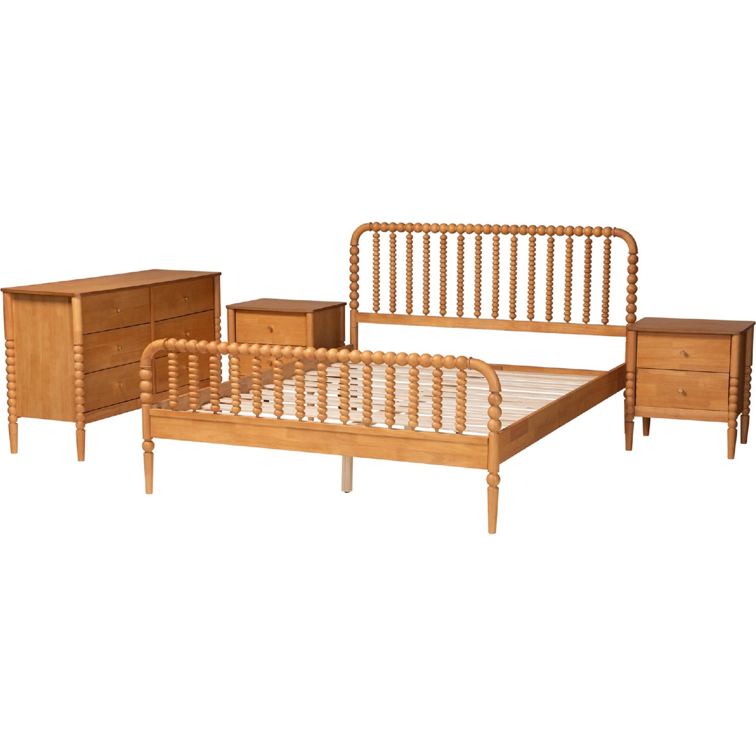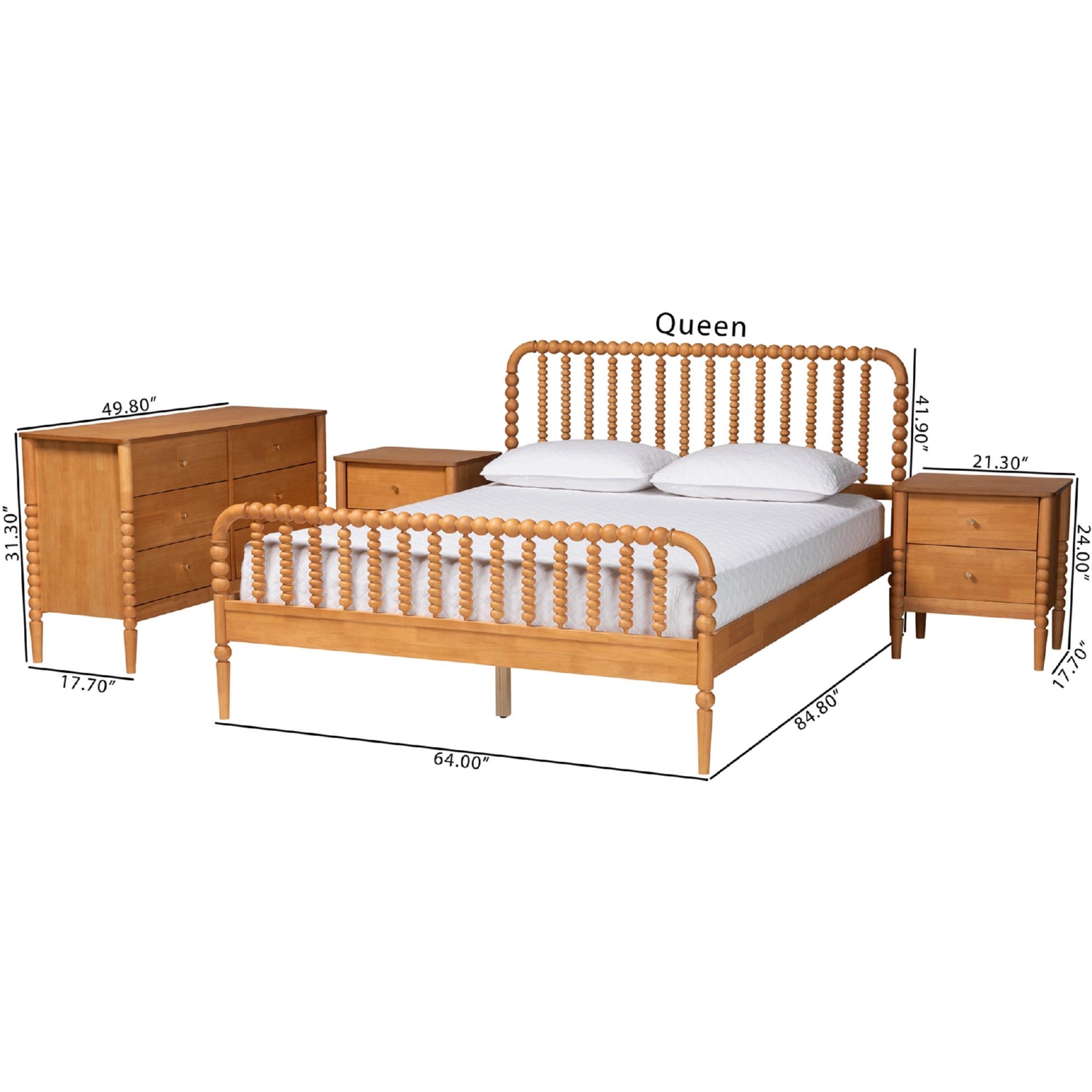 Baxton Studio MG0110-4-NT Oak-Queen 4PC Bedroom Set Lucera 4 Piece Queen Bobbin Bedroom Set Oak Brown Finish Wood