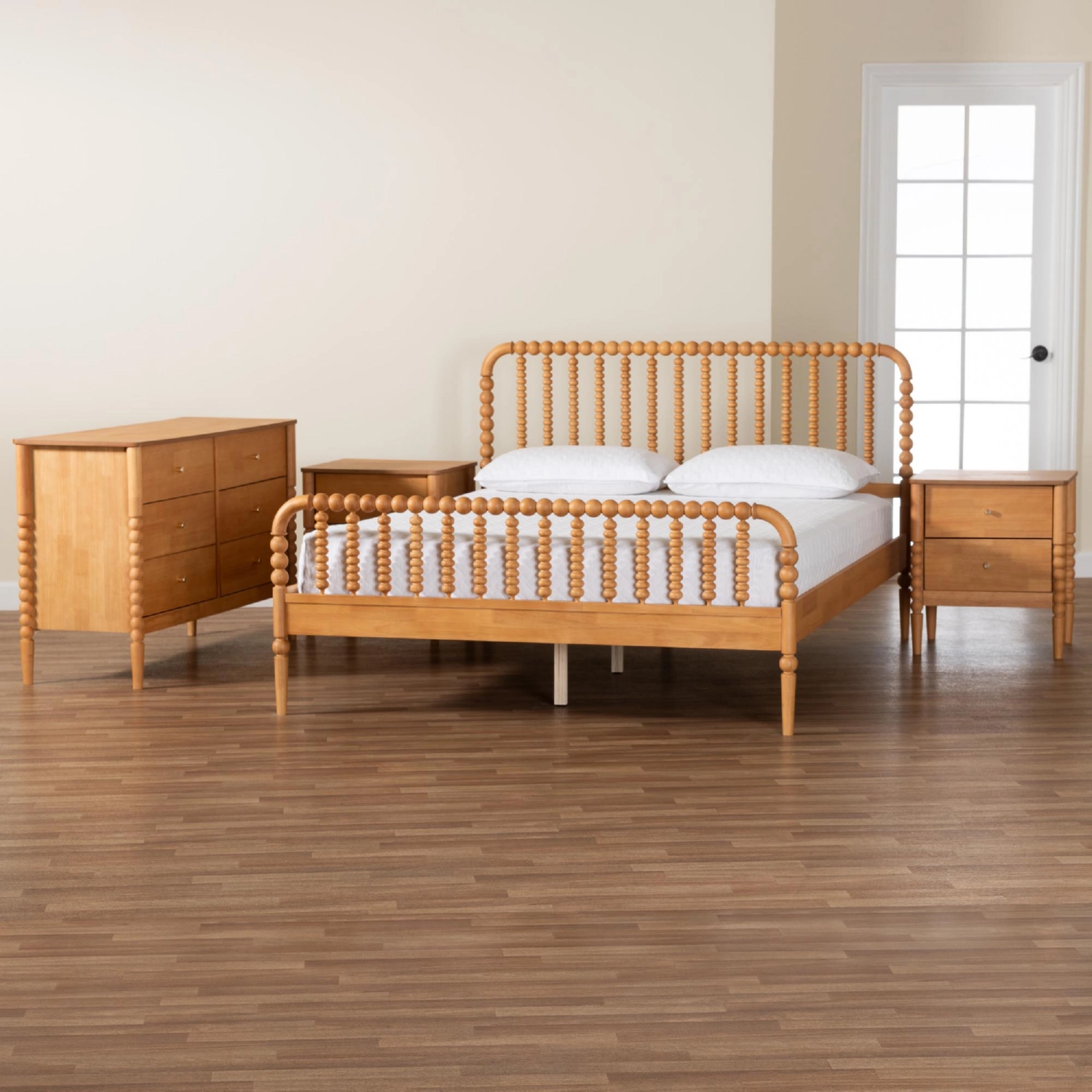 Baxton Studio Lucera 4 Piece Queen Bobbin Bedroom Set in Oak Brown Finish Wood