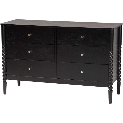 Baxton Studio Lucera 6 Drawer Bobbin Dresser in Black Finish Bobbin Wood