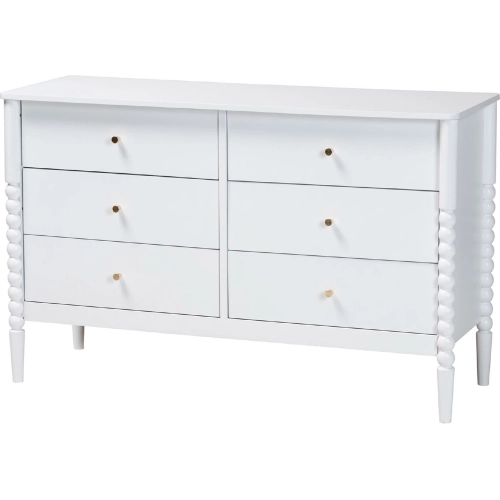 Lucera 6 Drawer Bobbin Dresser in White Finish Wood
