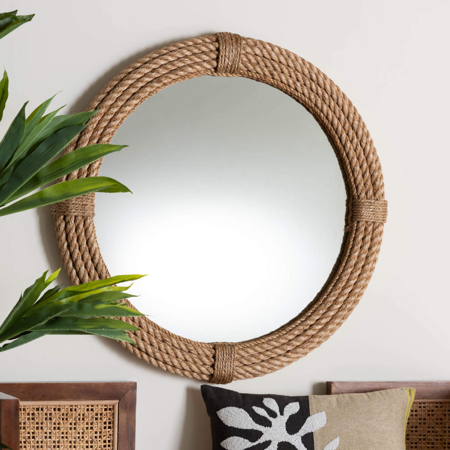 bali & pari Manila Round Rope-Mirror Manila Round Accent Wall Mirror Woven Rope