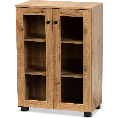 Baxton Studio B12-Wotan Oak Mason Storage Cabinet Sideboard Oak Finish Wood & Glass