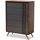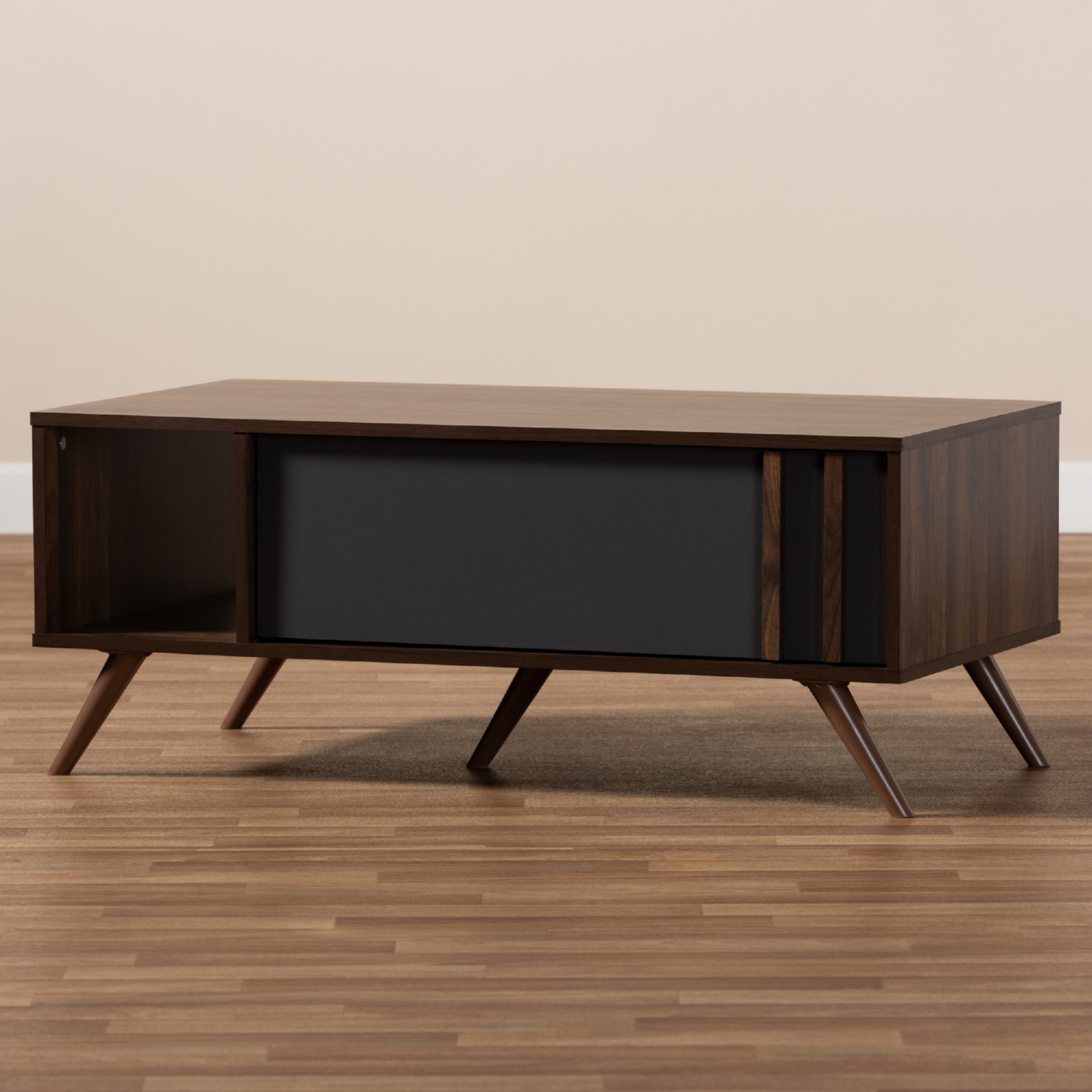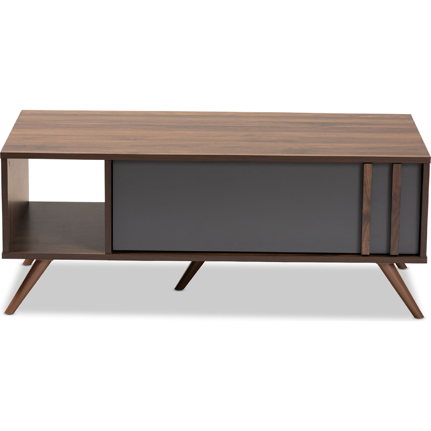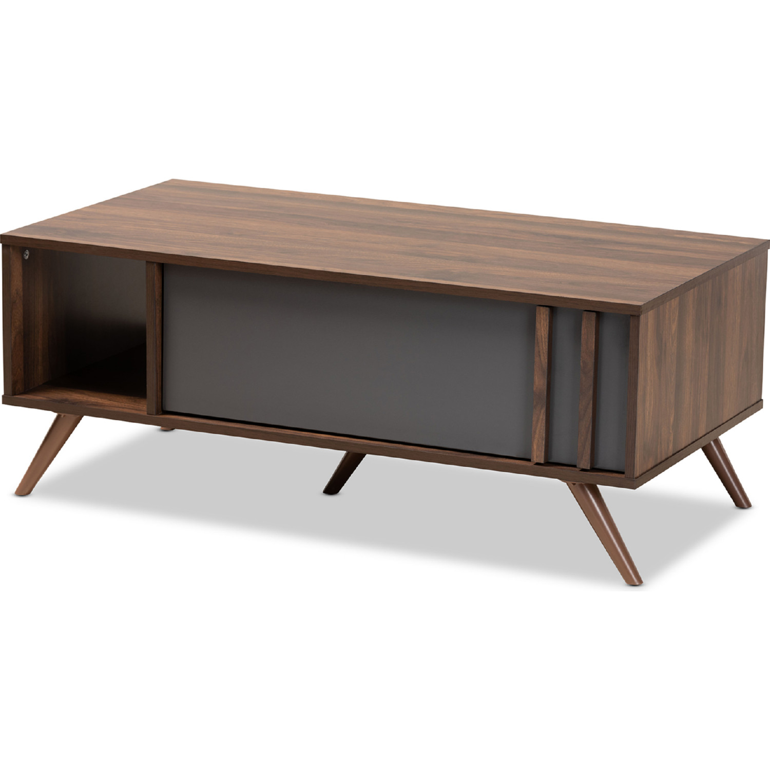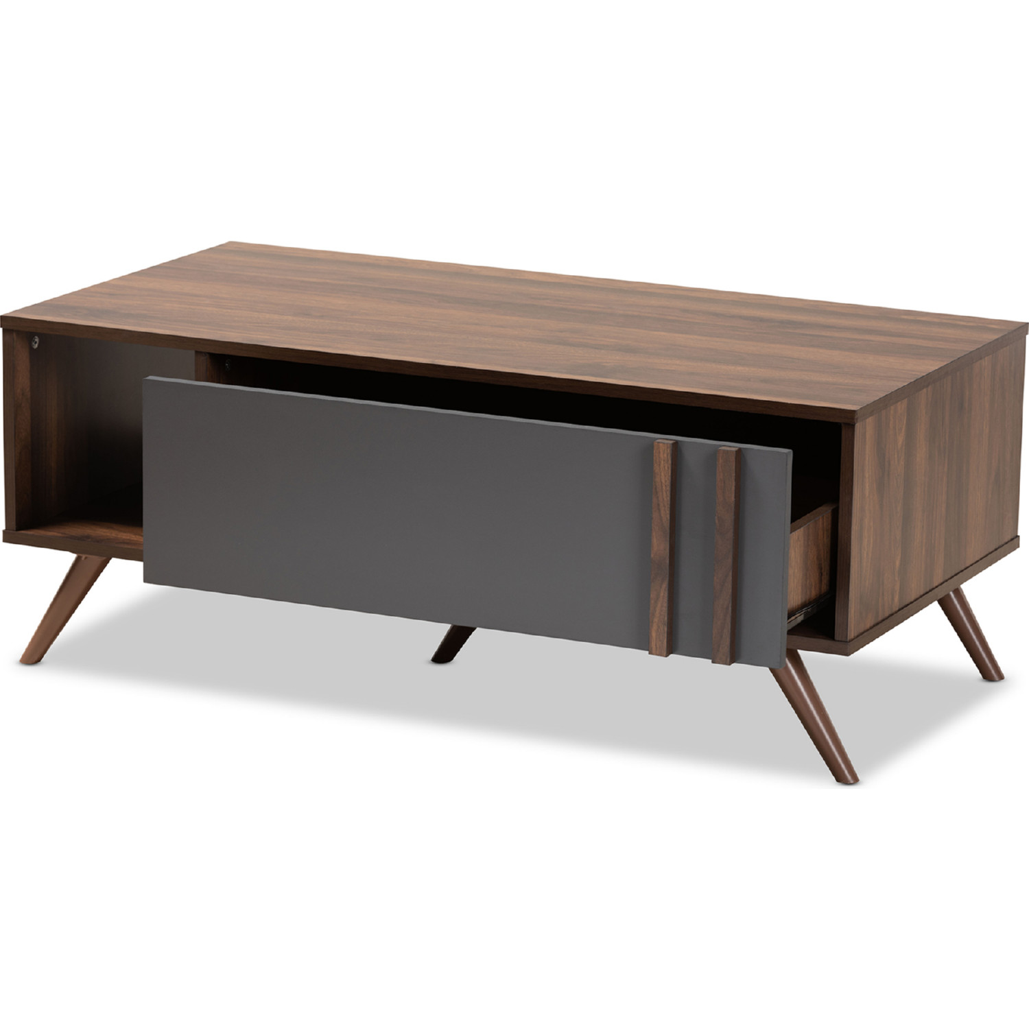 Baxton Studio Naoki 1 Drawer Coffee Table in Grey & Walnut Finish Wood