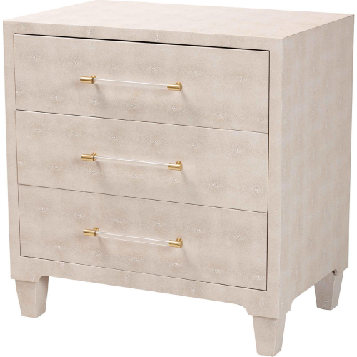 Baxton Studio JY24A042-Beige Faux Shagreen-Cabinet Nira 3 Drawer Storage Cabinet Beige Faux Shagreen