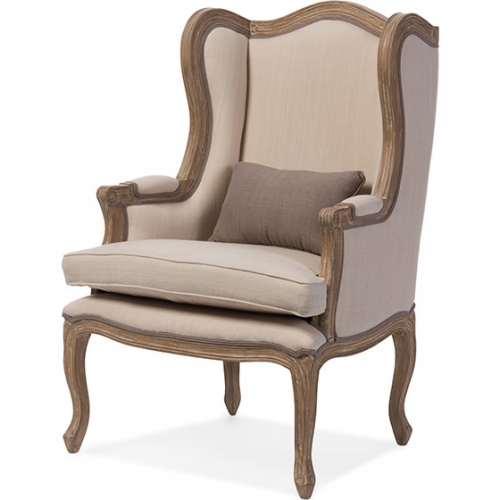 Baxton Studio ASS561Mi-CG4 Oreille Accent Chair Beige Fabric & White Wash