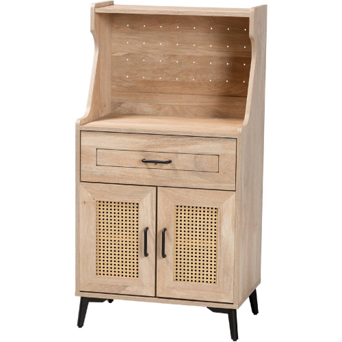 Baxton Studio FP-2402-2001B-Natural/Black-Kitchen Cabinet Pavone Cabinet Oak Brown Finish Wood, Rattan Black Metal