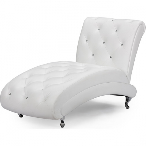 Baxton Studio Pease Chaise Lounge Chair in Faux Crystal Button Tufted White Leatherette