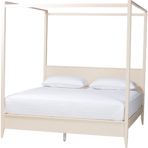Baxton Studio SW8609-Ivory-Canopy King Primrose King Canopy Bed Ivory Fluted Wood