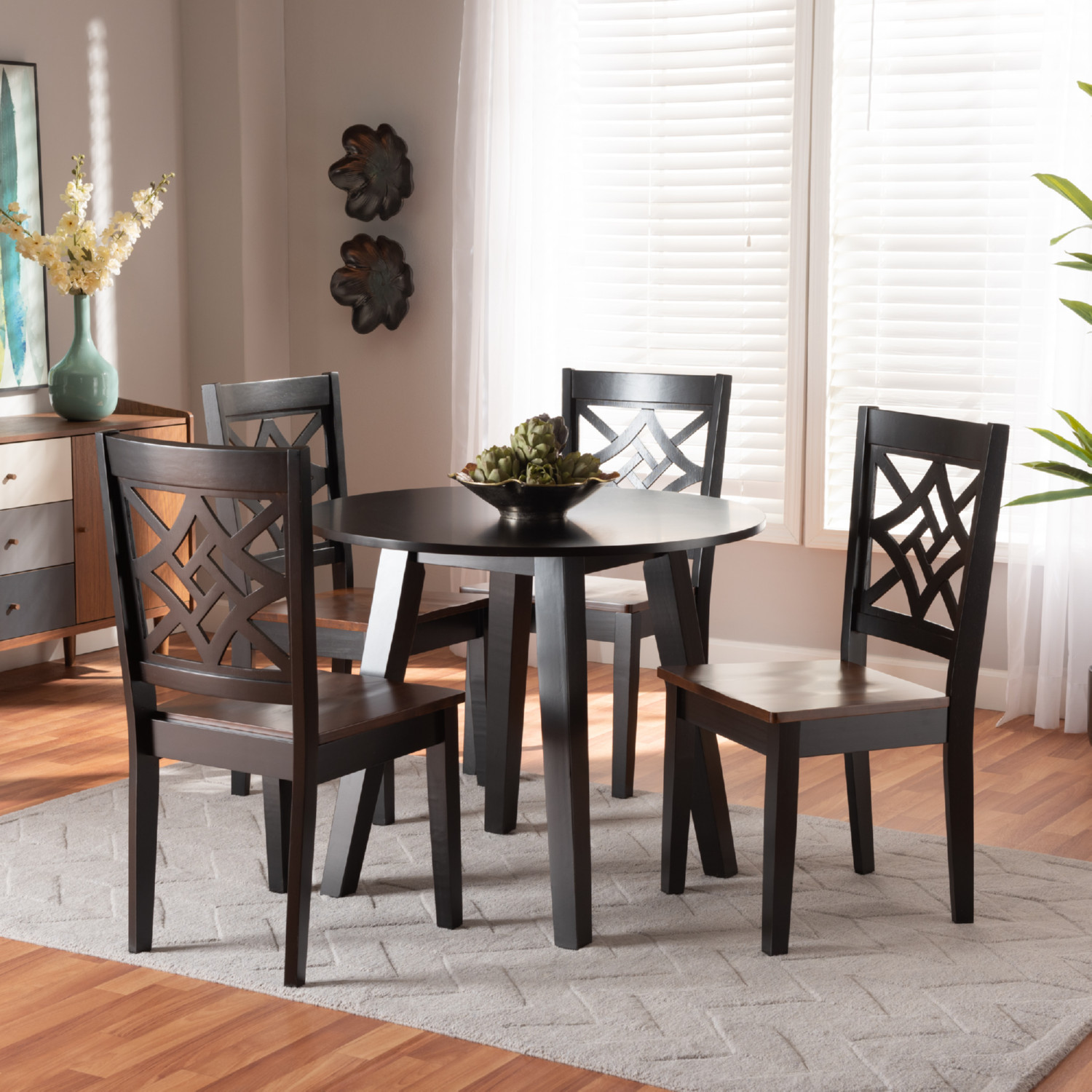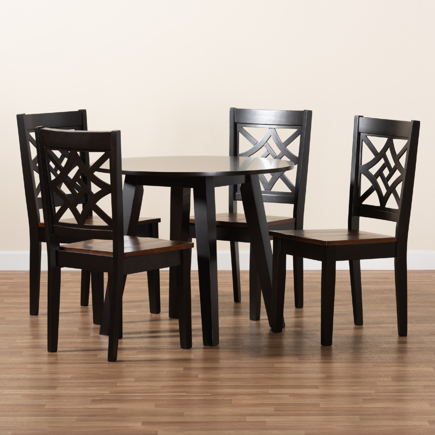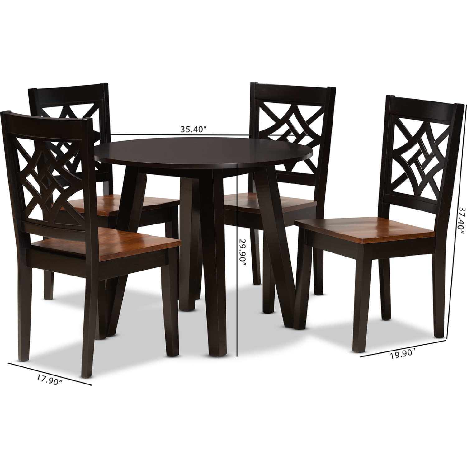 Baxton Studio Rava 5 Piece Dining Set in Dark & Walnut Finish Wood