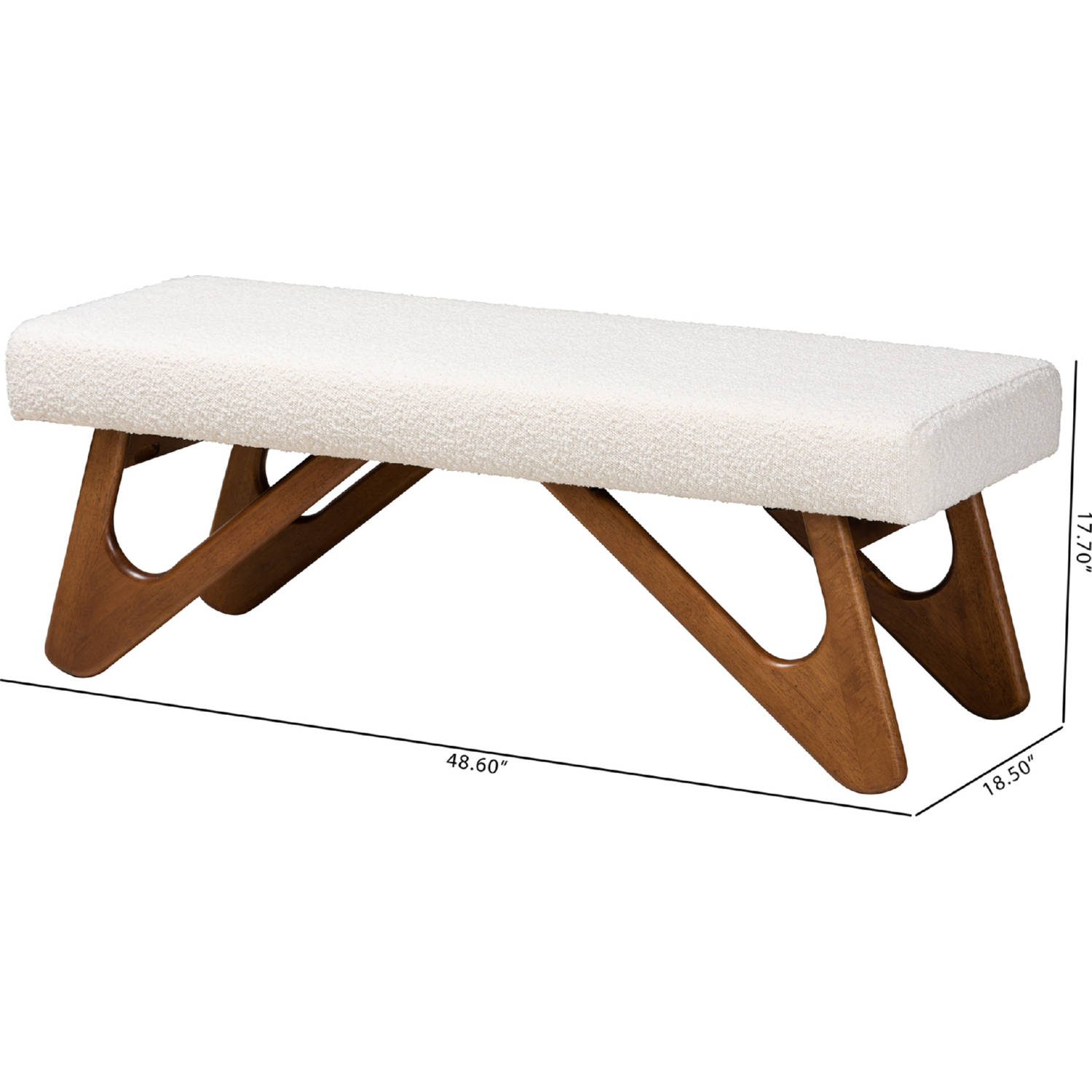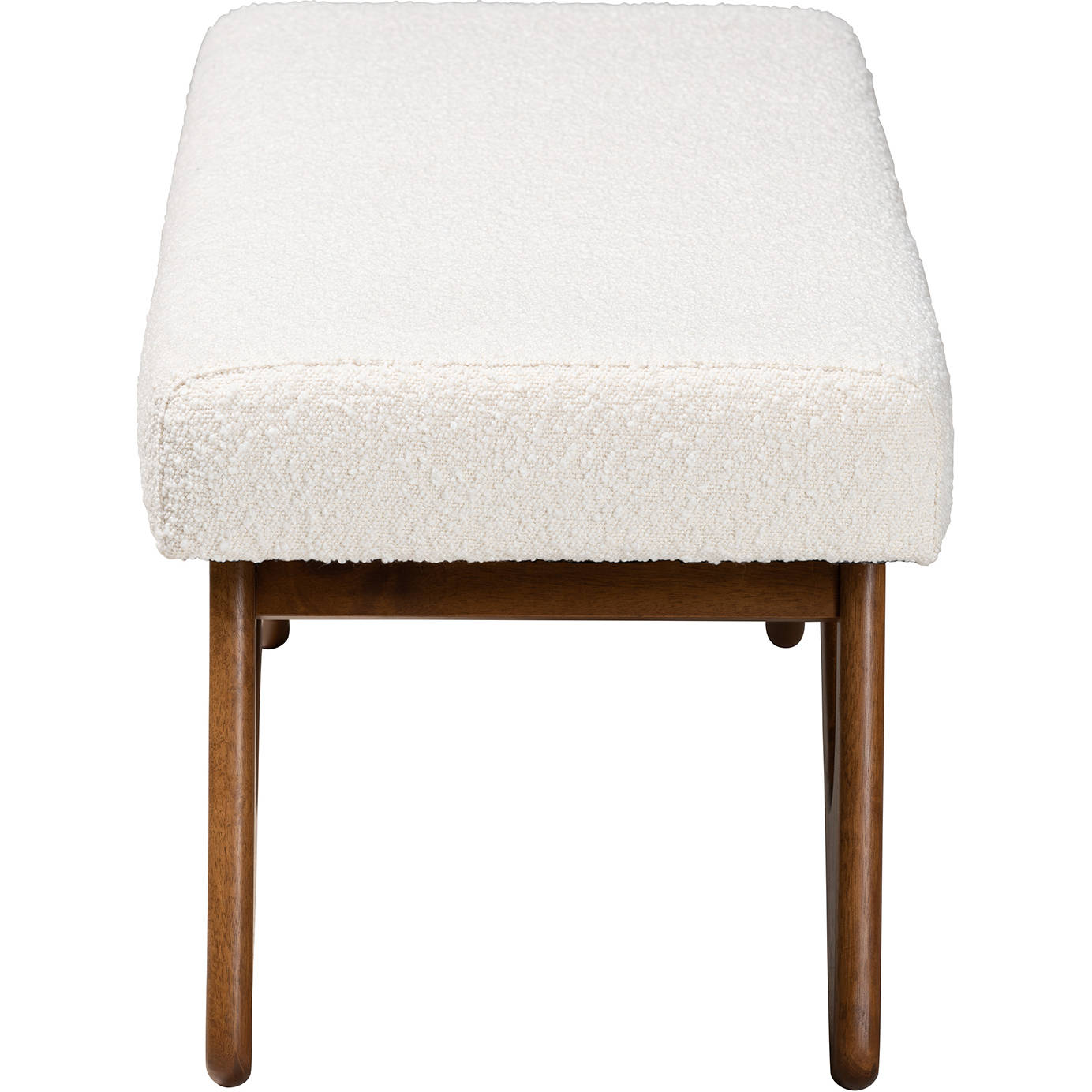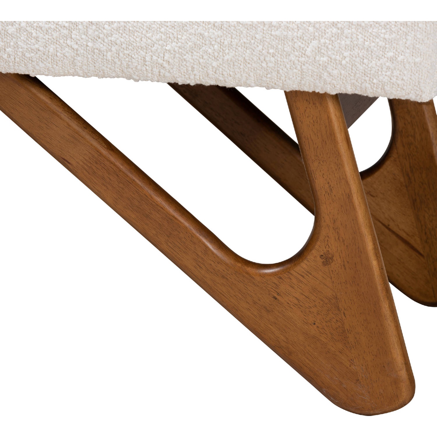 Baxton Studio Rika Bench in Cream Boucle Fabric & Walnut Brown Finish Wood