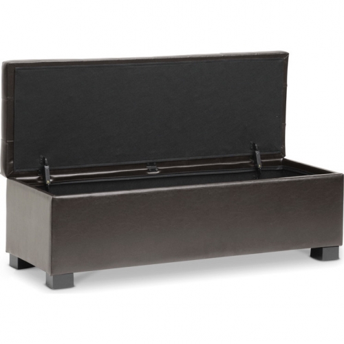 Baxton Studio BBT3101-Dark Brown-OTTO Roanoke Storage Ottoman Bench Tufted Brown Bonded Leather