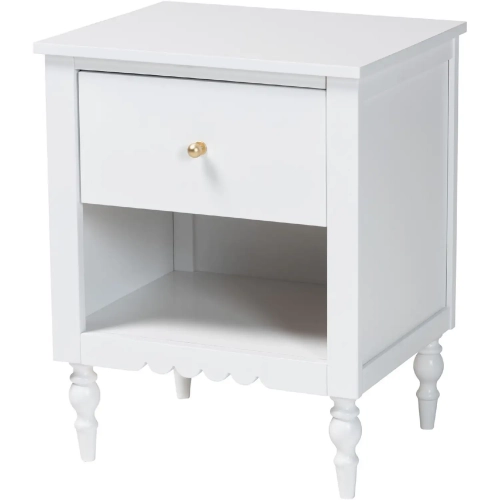 Baxton Studio Roni 1 Drawer Nightstand White Scalloped Wood