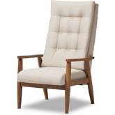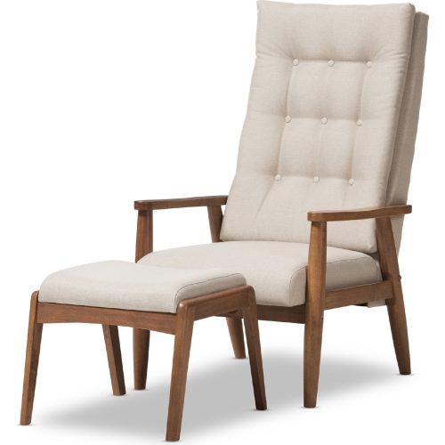 Baxton Studio Roxy Accent Chair & Ottoman in Tufted Beige Fabric & Walnut Finish