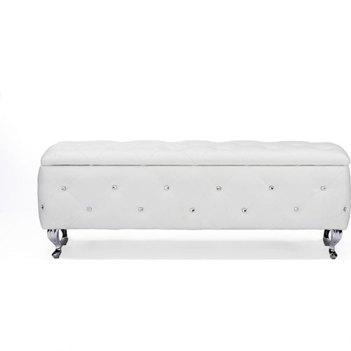 Baxton Studio BBT3112-White-Storage Bench Seine Storage Ottoman Tufted White Leatherette & Chrome