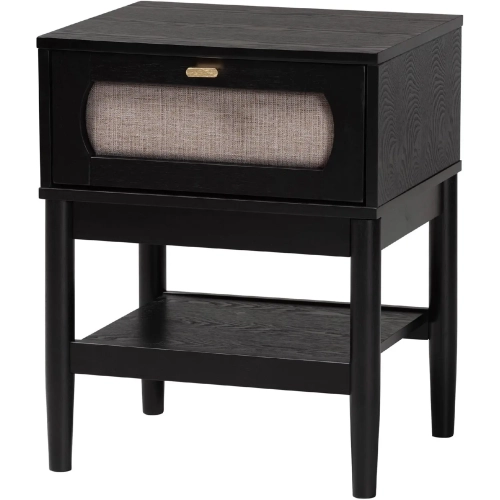 Baxton Studio Shirin 1 Drawer Nightstand in Black Wood & Beige Fabric