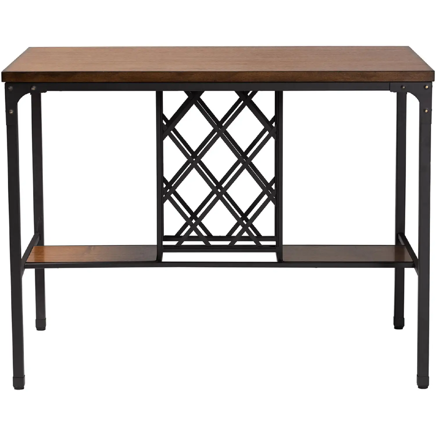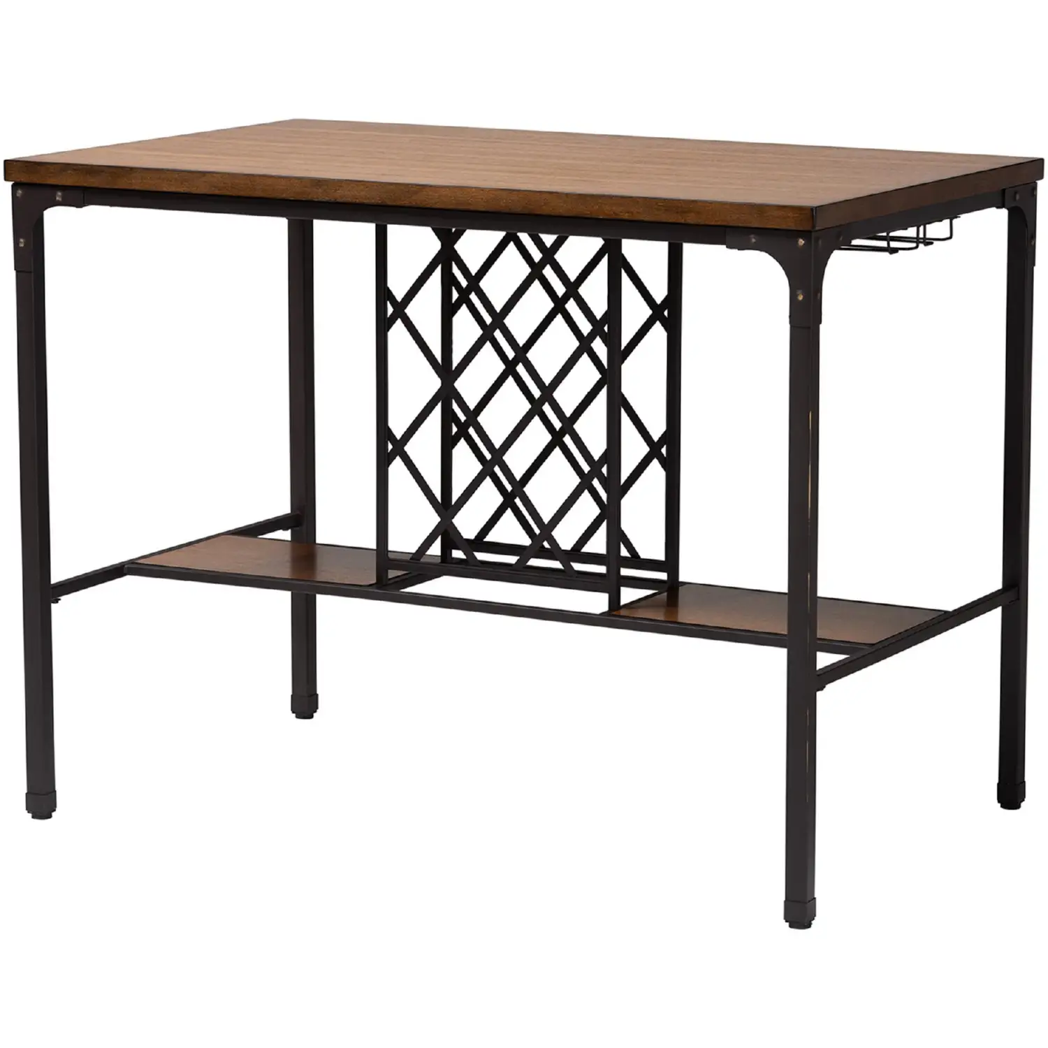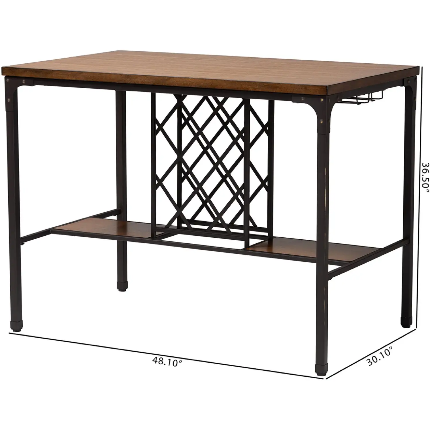 Baxton Studio Vintner Pub Table with Built-In Wine Cage in Reclaimed Wood & Black Metal