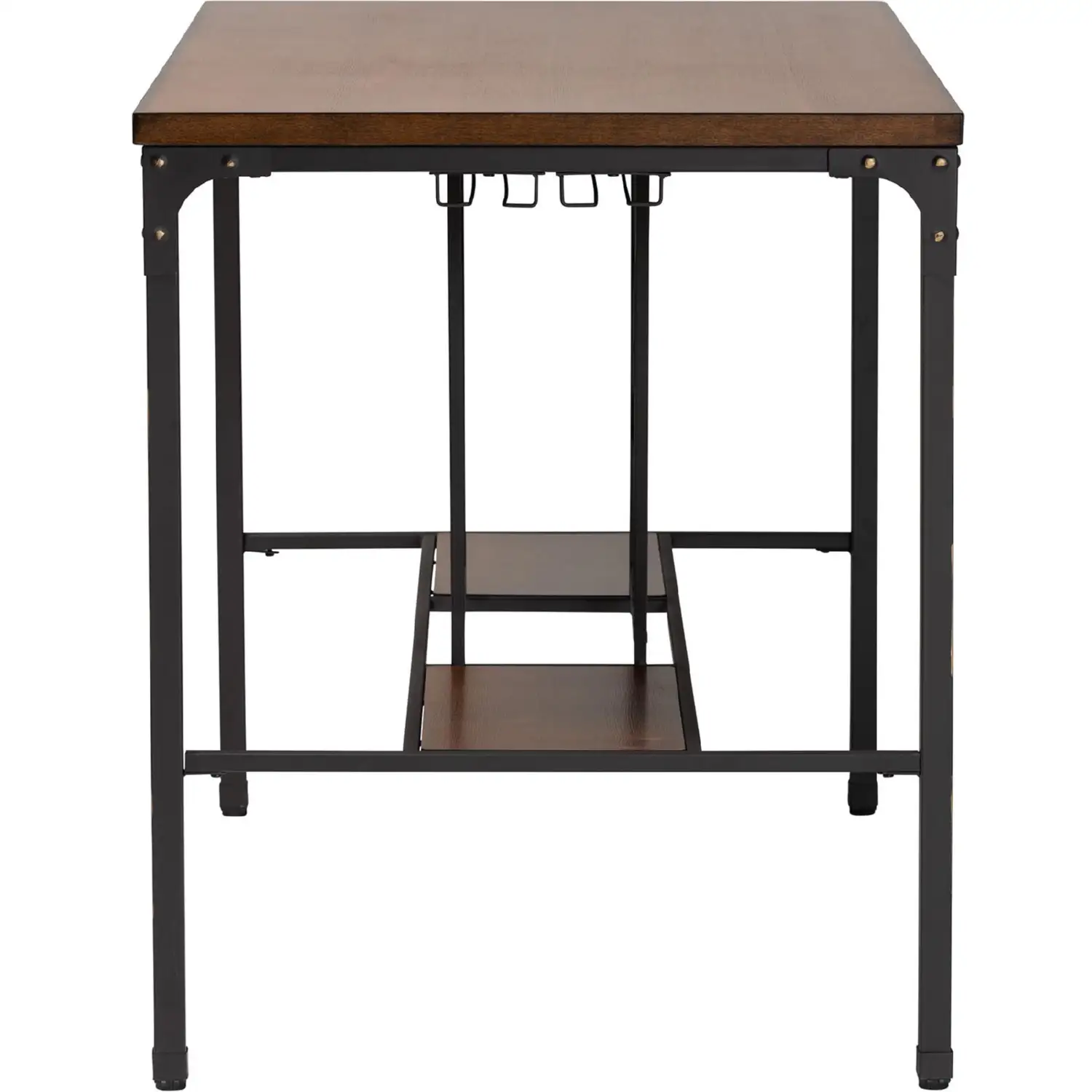 Dimensions: Overall Pub Table: 48.10"W x 30.10"D x 36.50"H, Table Top: 1.20"D, Bottom Shelf (each): 16.70"W x 11.00"D, Distance between shelf to bottom of table top: 22.40", Wine Holder: 4.50"W, Clearance (floor to bottom shelf): 12.00"
