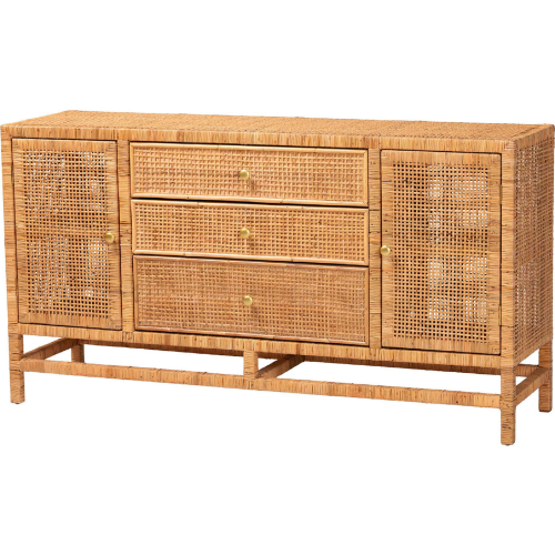 bali & pari Vivan-SV2089-Natural-Rattan-Cabinet Vivan 3 Drawer Storage Cabinet Honey Rattan Mahogany Wood