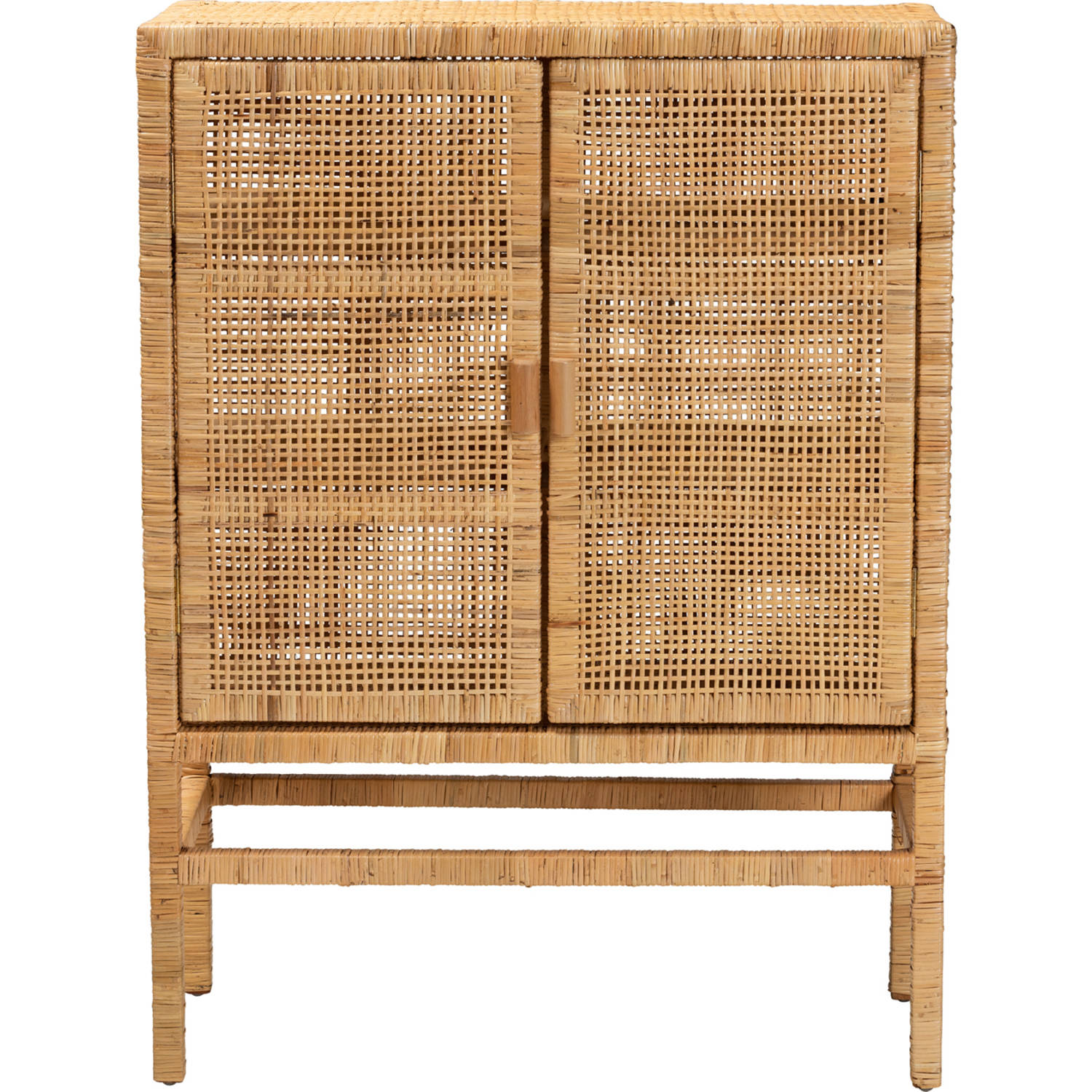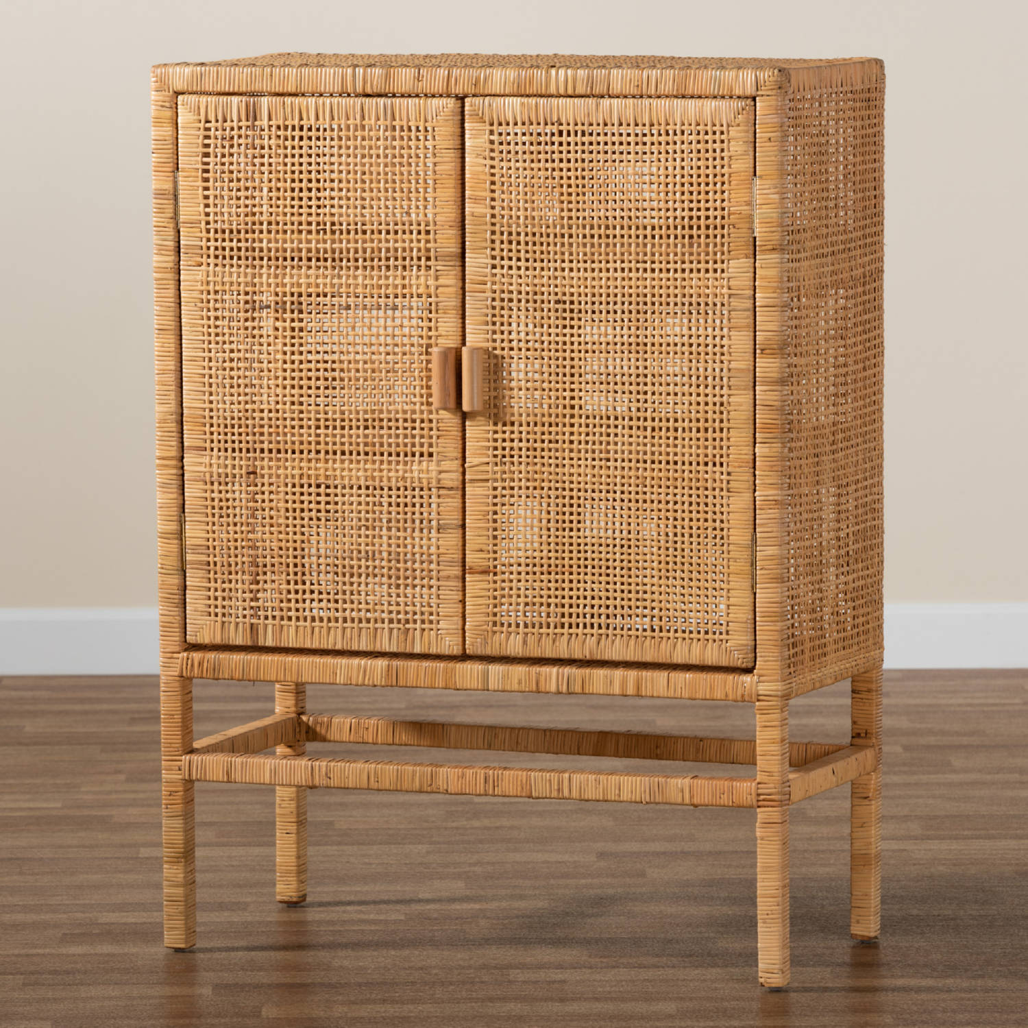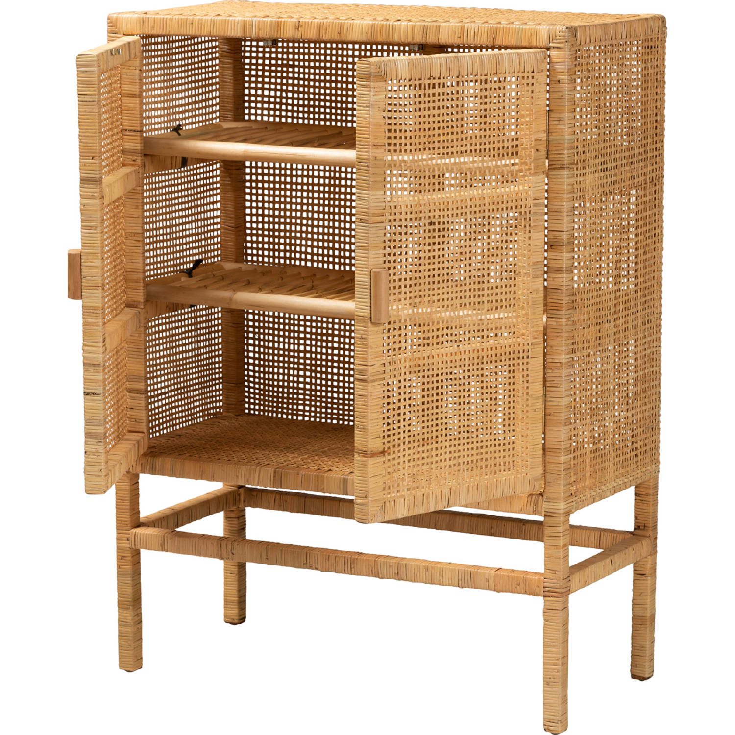 Baxton Studio Vivan 3 Shelf Cabinet in Natural Rattan & Mahogany