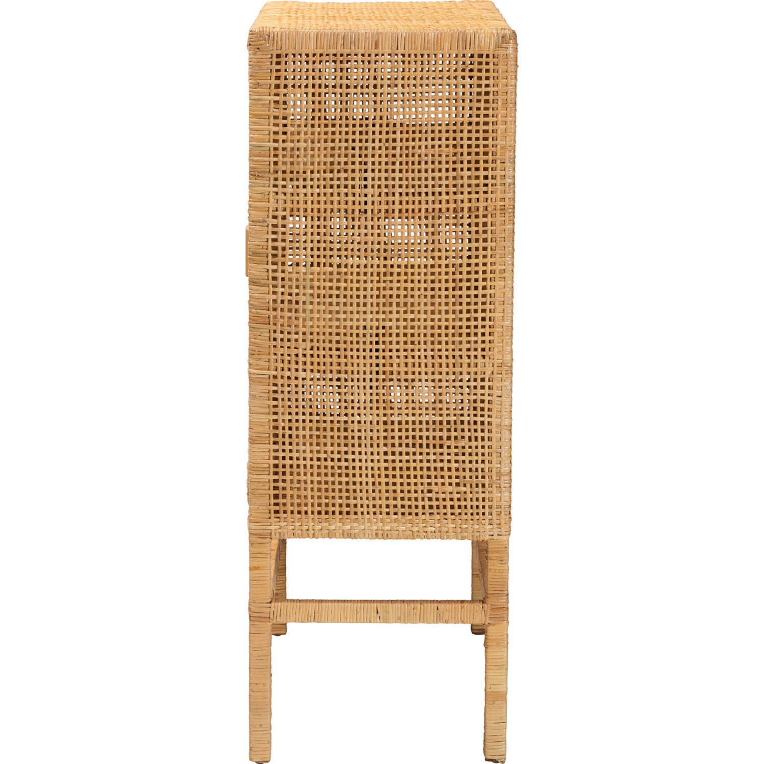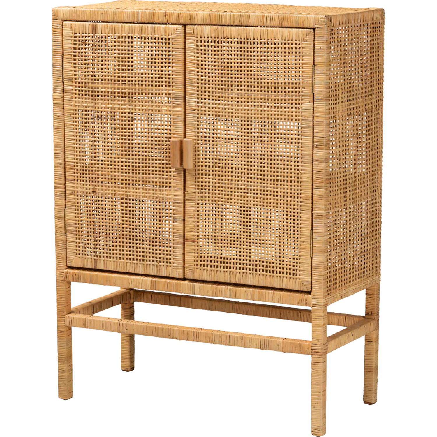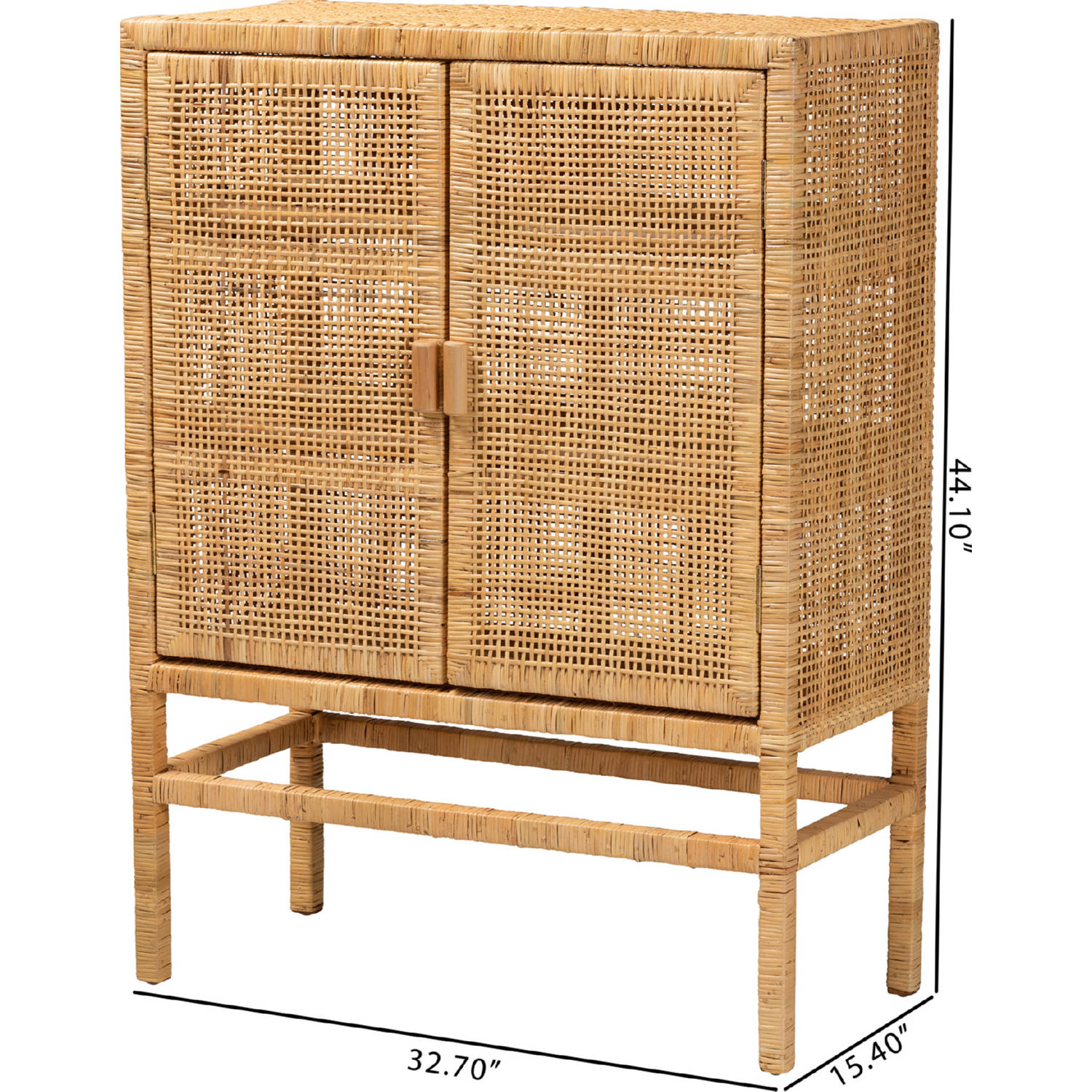 Baxton Studio Vivan 3 Shelf Cabinet in Natural Rattan & Mahogany